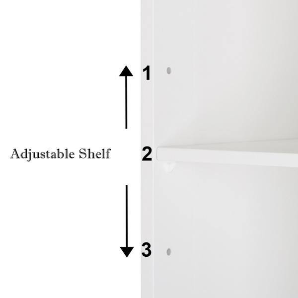 A: The cabinet features two fixed shelves that provide a stable and organized storage space.