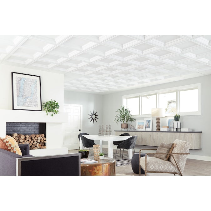 Transform any space with the Easy Elegance deep coffer ceiling tiles, offering a sophisticated coffered appearance without the expense of custom work. Made from durable PVC, these tiles are easy to install in the Armstrong Prelude grid system, ensuring a mold, mildew, and sag-resistant finish with lasting elegance.
