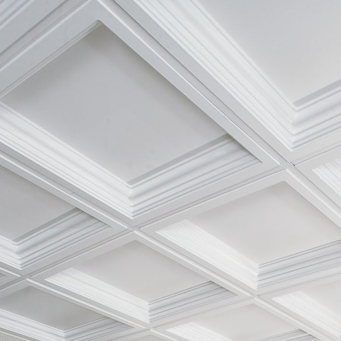 Design: Deep coffer with a 2.5-inch depth and tegular edge detail for minimized grid appearance