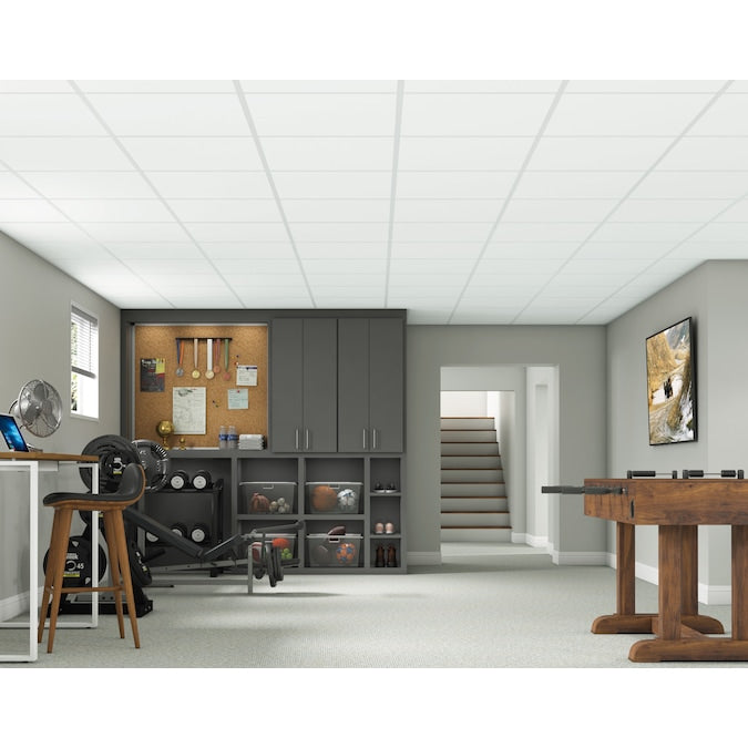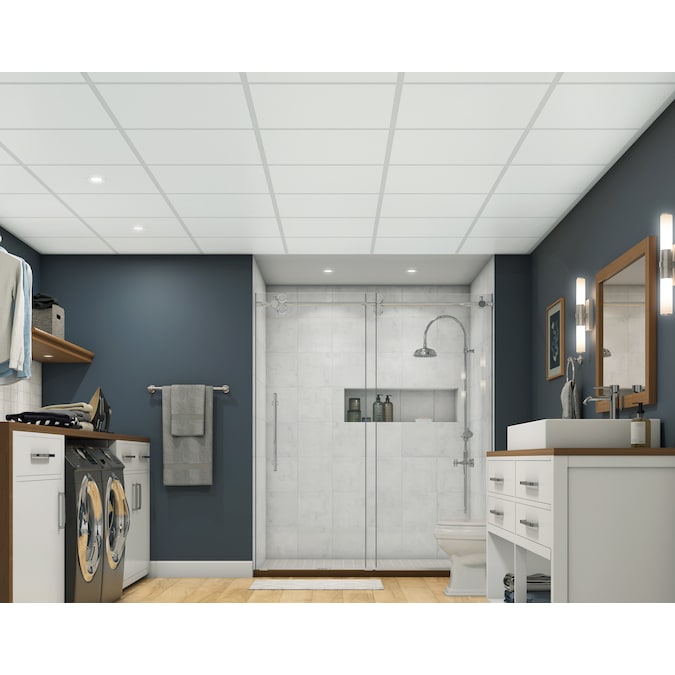 The Easy Elegance PVC Drop Ceiling Tile is a versatile 2-ft x 2-ft option perfect for enhancing residential spaces. With a smooth, bright white satin finish, these tiles are easy to clean, mold and mildew resistant, and feature an ASTM-E84 Class A fire rating for safety and durability.