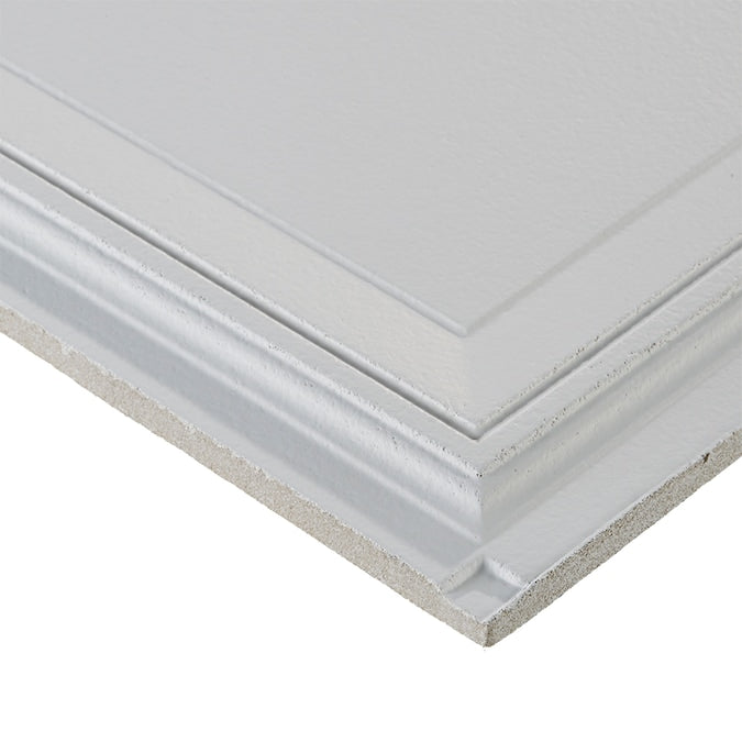 Enhance your space with Armstrong's upscale 2-ft x 2-ft Raised Panel HomeStyle White Mineral Fiber Drop Ceiling Tile. Designed to minimize grid visibility and amplify acoustic comfort, this elegant solution reduces noise while maintaining Class A fire safety standards.