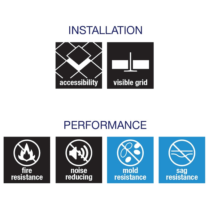 Transform your workspace with the Armstrong Sahara White Mineral Fiber Ceiling Tile. Engineered with a smooth, refined finish, these tiles provide exceptional acoustic performance and robust fire resistance. Ideal for both commercial and residential use, they offer impressive mold, mildew, and sag resistance, ensuring long-lasting durability.