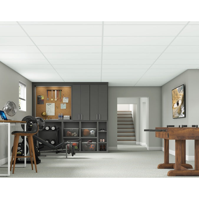 Transform your residential space with the Easy Elegance White PVC Ceiling Tile, offering a bright white satin finish and unmatched durability. Designed for easy installation in a standard grid system, these tiles are resistant to mold, mildew, sag, and stains, making them perfect for moisture-prone areas.