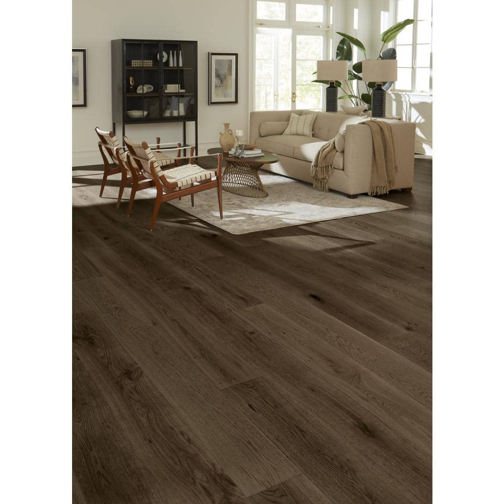 Transform your living area into a canvas of luxury with ASPEN FLOORING's Desert Shadow Hickory. This engineered hardwood captivates with its light wire-brushed, matte finish, adding subtle texture and warmth to your interiors. Imagine pairing it with plush area rugs and soft, layered textiles to create a rich contrast that amplifies your room's harmony. Desert Shadow Hickory's authentic character not only enhances a home's aesthetic but asserts itself as a hallmark of sophisticated living.