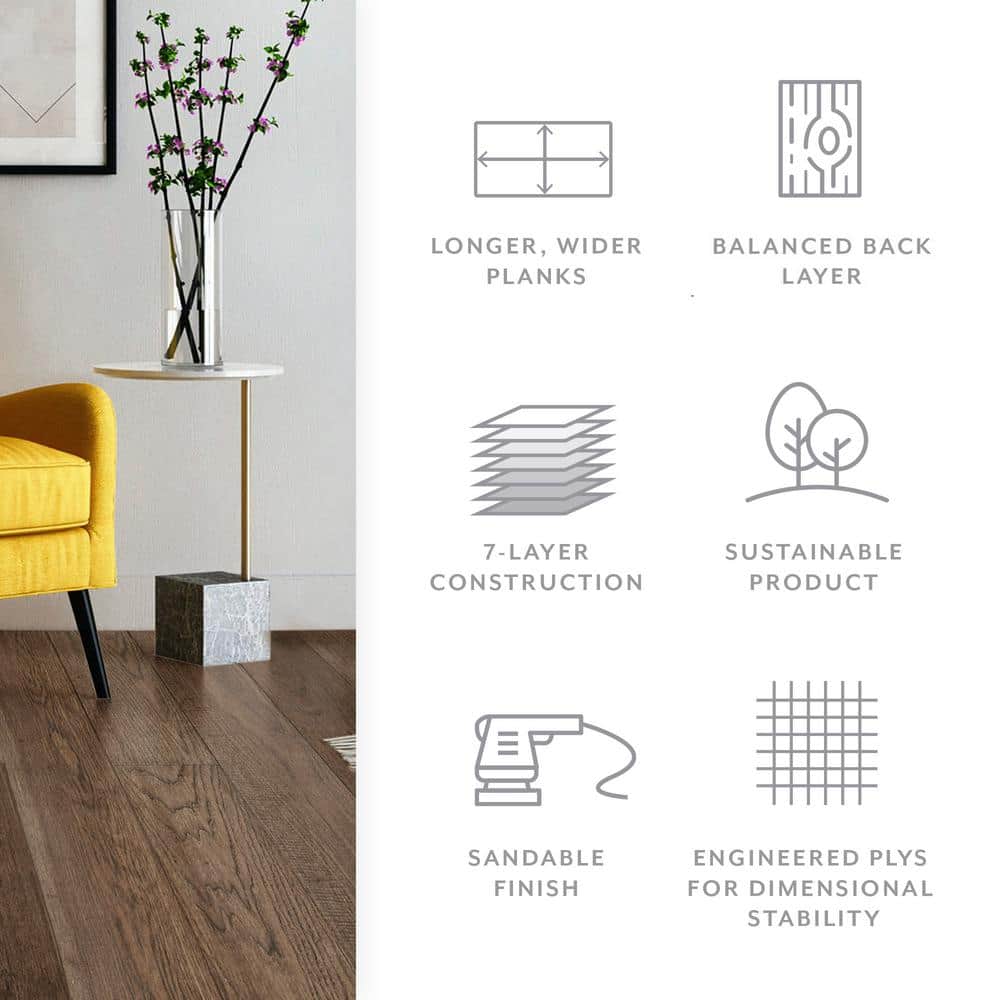 - Durability: Features a 3mm sandable wear layer for enhanced longevity, allowing refinishing as needed.