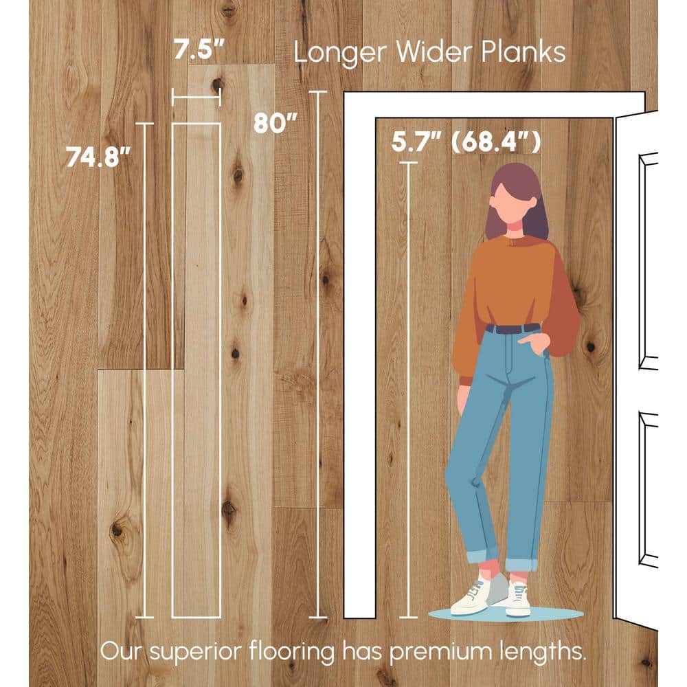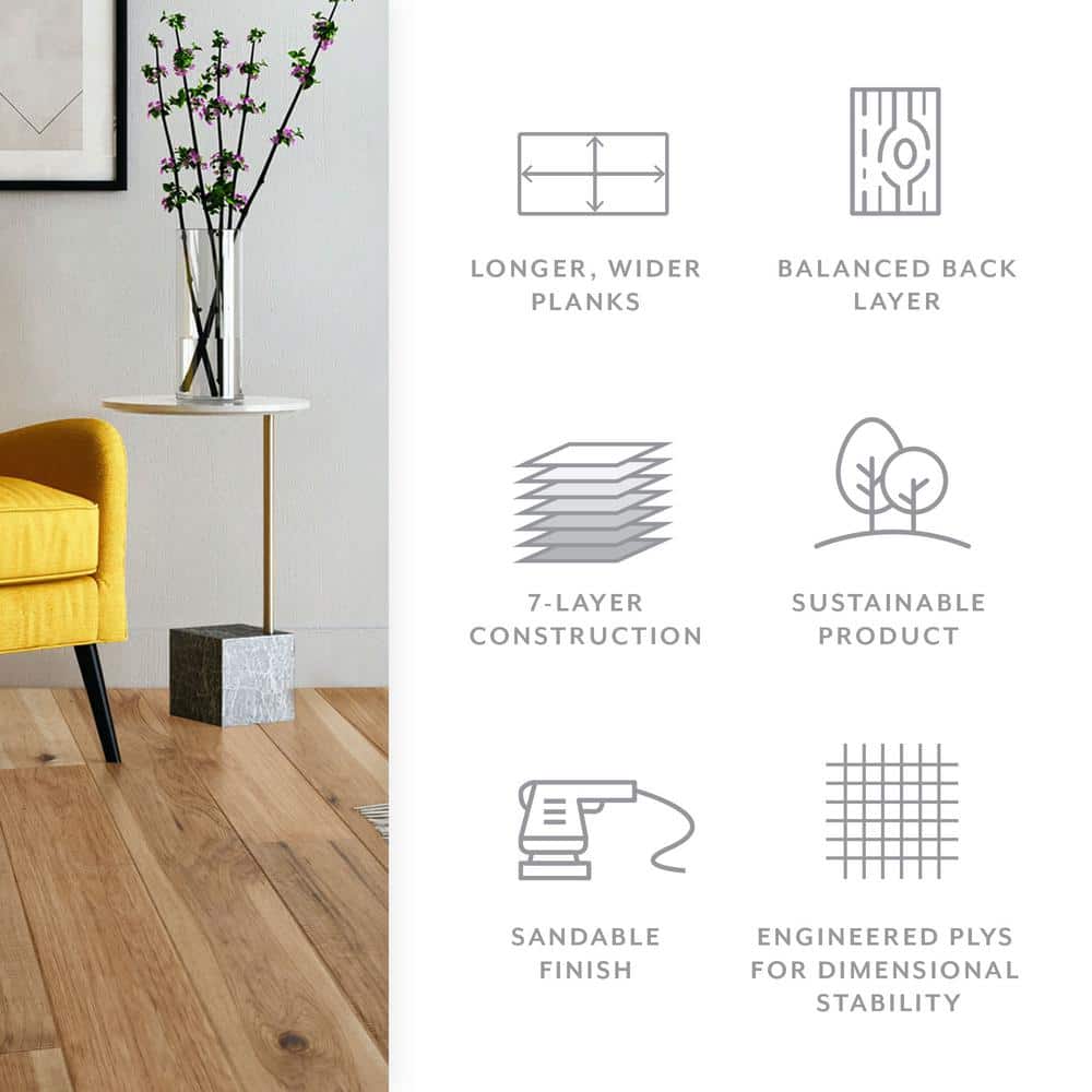 - Material: Prefinished hickory engineered hardwood with a low-gloss finish for a sleek, modern appearance.