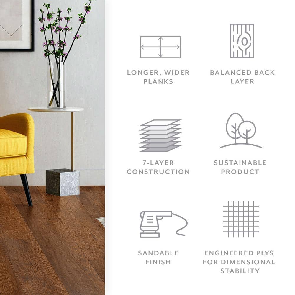 ASPEN FLOORING Pueblo White Oak 9/16 in. T x 8.66 in. W Tongue and Groove Wire Brushed Engineered Hardwood Flooring (31.25 sqft/case)