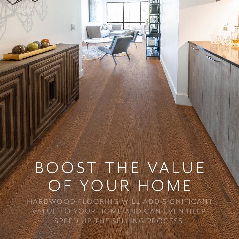 Revitalize your space with ASPEN FLOORING's Pueblo White Oak hardwood flooring. This engineered masterpiece combines the elegance of European White Oak with a durable, wire-brushed texture that brings liveable luxury to any room. Its high-quality construction ensures a lifetime of beauty and resilience.
