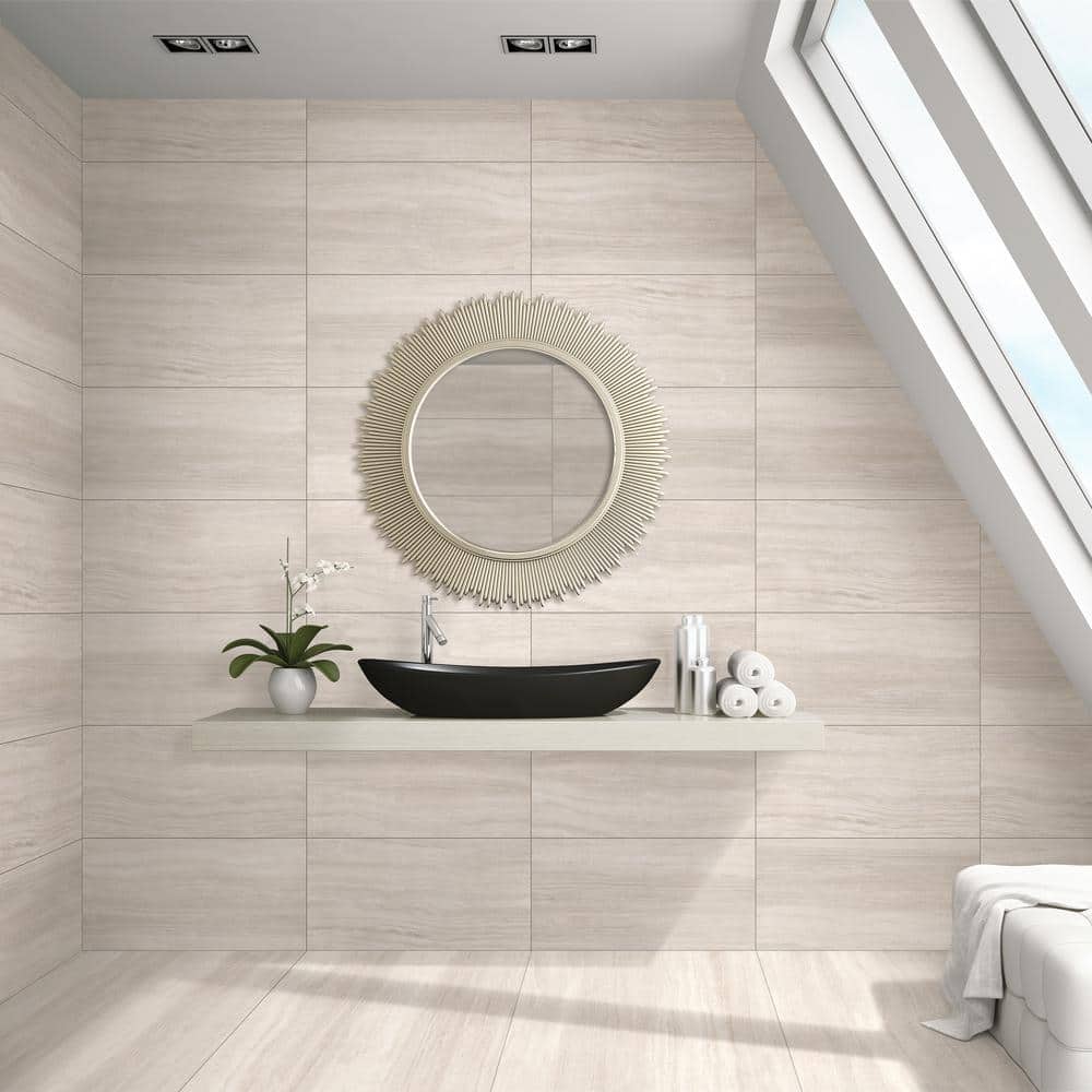 Atlanta Beige 11.72 in. x 23.69 in. Matte Travertine Look Porcelain Floor and Wall Tile (15.5 sq. ft./Case)