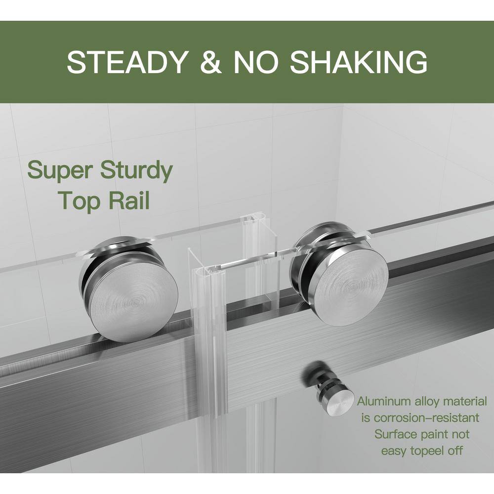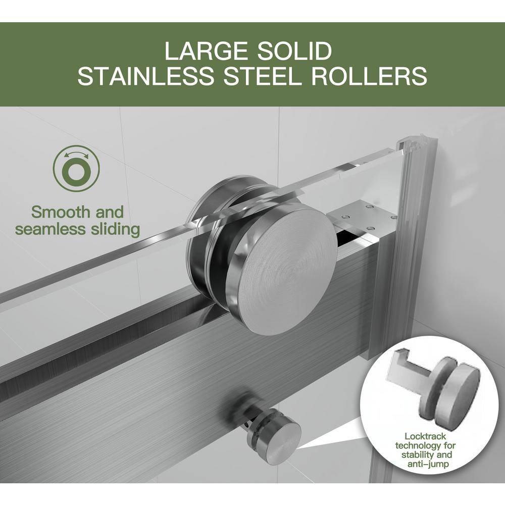 AZDHOME Frameless Sliding Shower Door with Soft-Close in Nickel