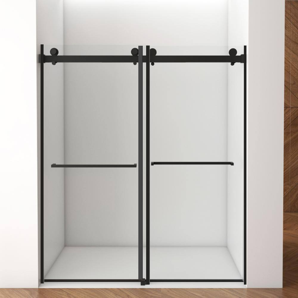 AZDHOME 56-60 in.W x 76 in.H Frameless Sliding Glass Shower Door in Matte Black With 3/8 in.(10mm) Clear Tempered Glass