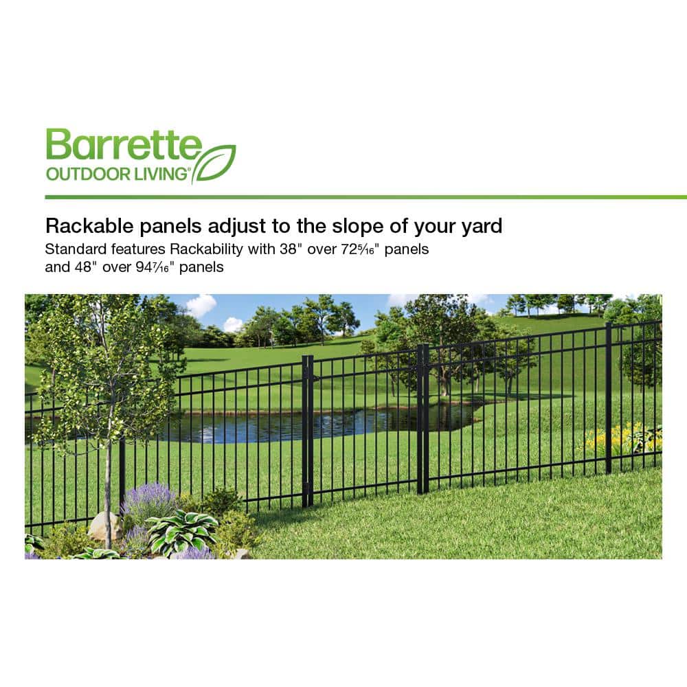 Enhance your property's security and curb appeal with the Barrette Outdoor Living Heavy-Duty Black Aluminum Fence Panel. Featuring innovative ProLock technology, this pre-assembled panel offers a seamless, durable finish and resists rust and corrosion. Perfect for professional contractors, its easy installation and adjustable design make it ideal for any terrain.