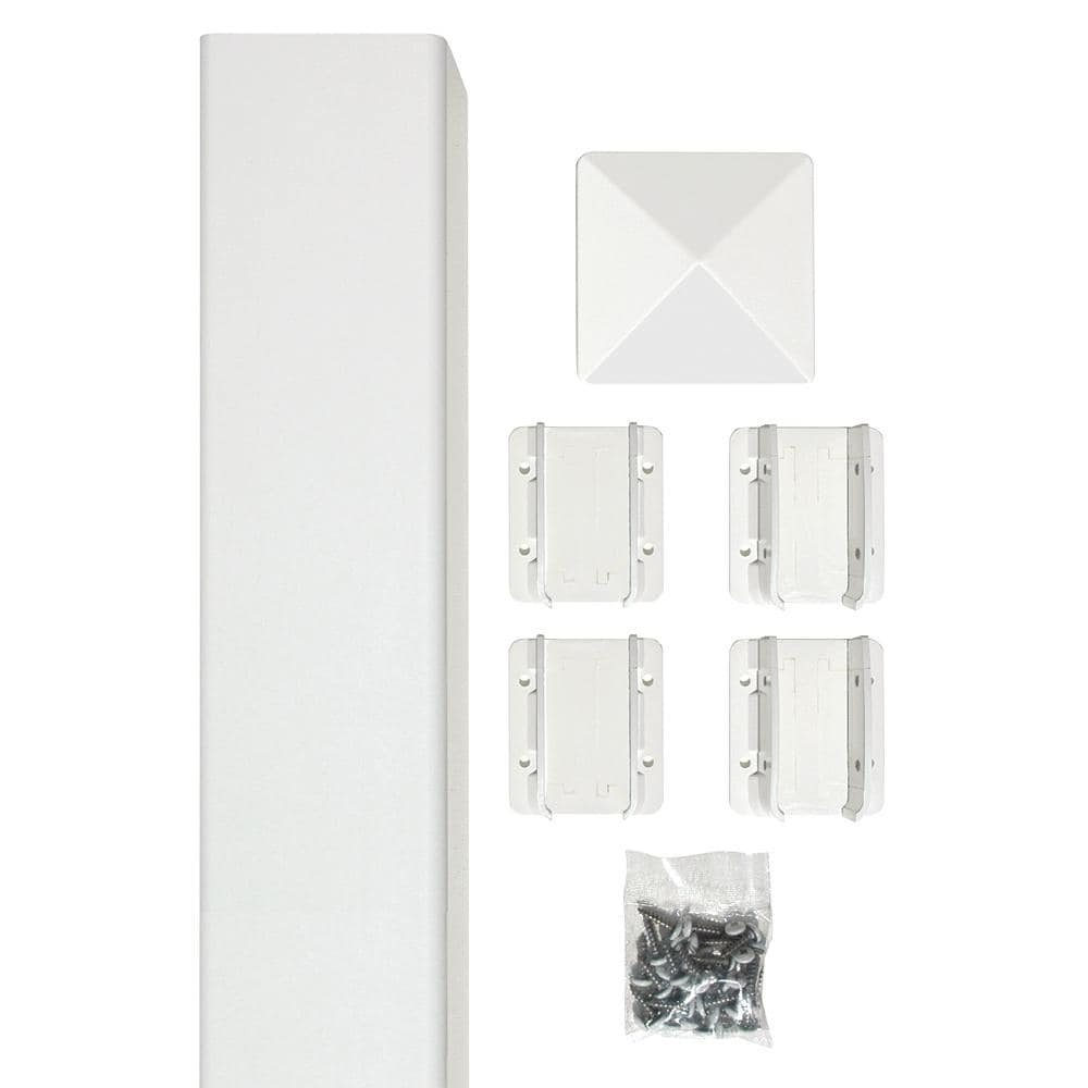 SIXTH AVENUE Belfast 4 in. x 4 in. x 96 in. White Vinyl Fence Post Kit