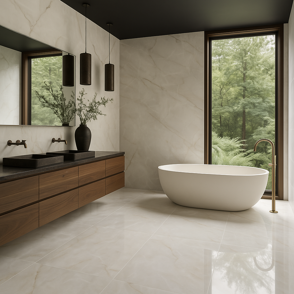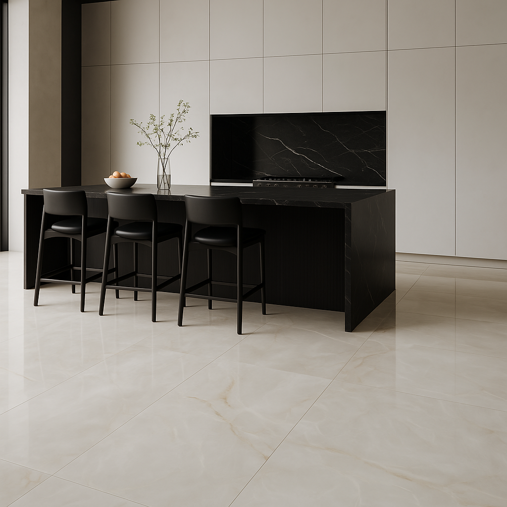 The Bianco Onice Polished Porcelain Tile offers a stunning stone look with a polished finish, perfect for both indoor and outdoor applications. Made in Italy, this tile combines high-quality craftsmanship with a sleek, modern aesthetic.