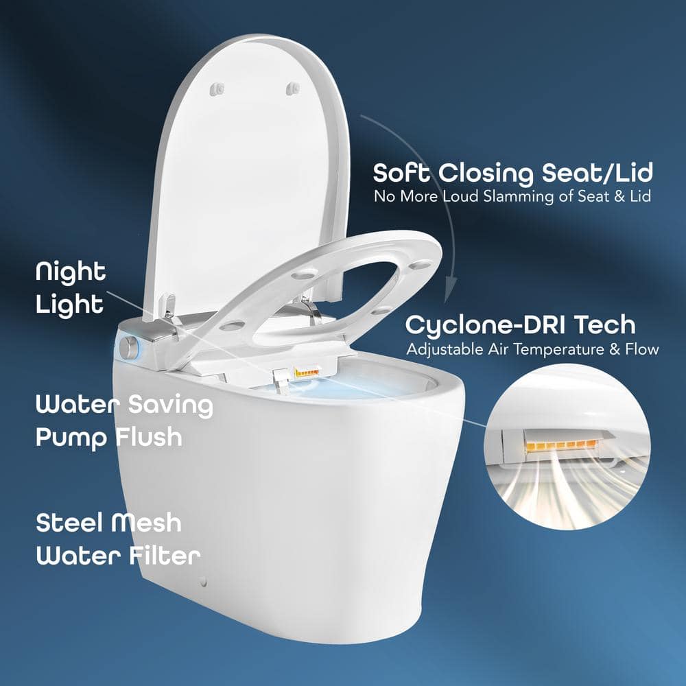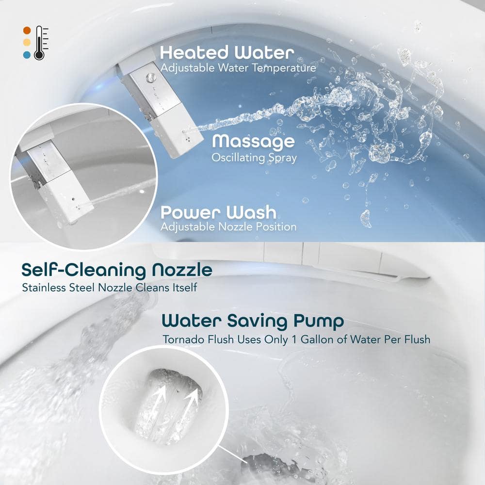 | Features | Adjustable Aerated Wash Spray,Adjustable Nozzle,Adjustable Sprayer Settings,Adjustable Water Pressure,Antimicrobial,Fade Resistant,Feminine Wash,Heated,In-Wall Tank,Integrated Bidet,Lighted,Posterior Wash,Remote Control Operation,Self-Cleaning,Soft Close,Stainless Steel Nozzle,Thin Design,Warm Air Dryer,Warm Water Wash |