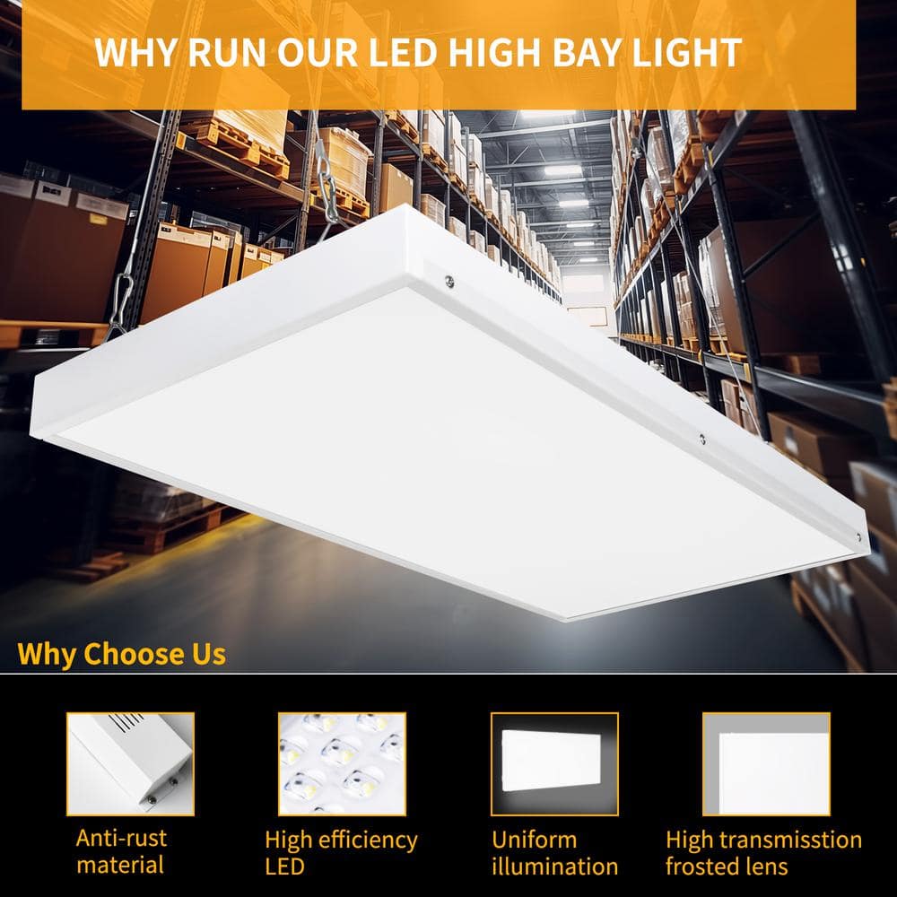Bieuoram 2 ft. 100-Watt Integrated LED White LED Linear High Bay Light 16000 Lumens 5000K Daylight for Shop, Warehouse (1-Pack)