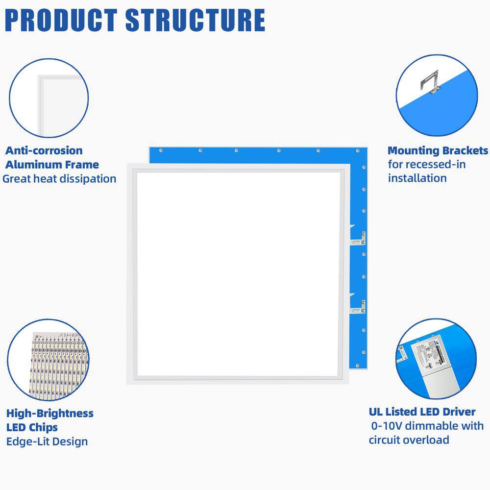 Illuminate your space with the Bieuoram 2 ft. x 2 ft. 5800 Lumens Integrated LED Panel Light. This versatile and efficient lighting solution offers 5000K daylight brightness, perfect for modern commercial settings. With its dimmable functionality, customize lighting levels effortlessly to suit your workspace or home environment.