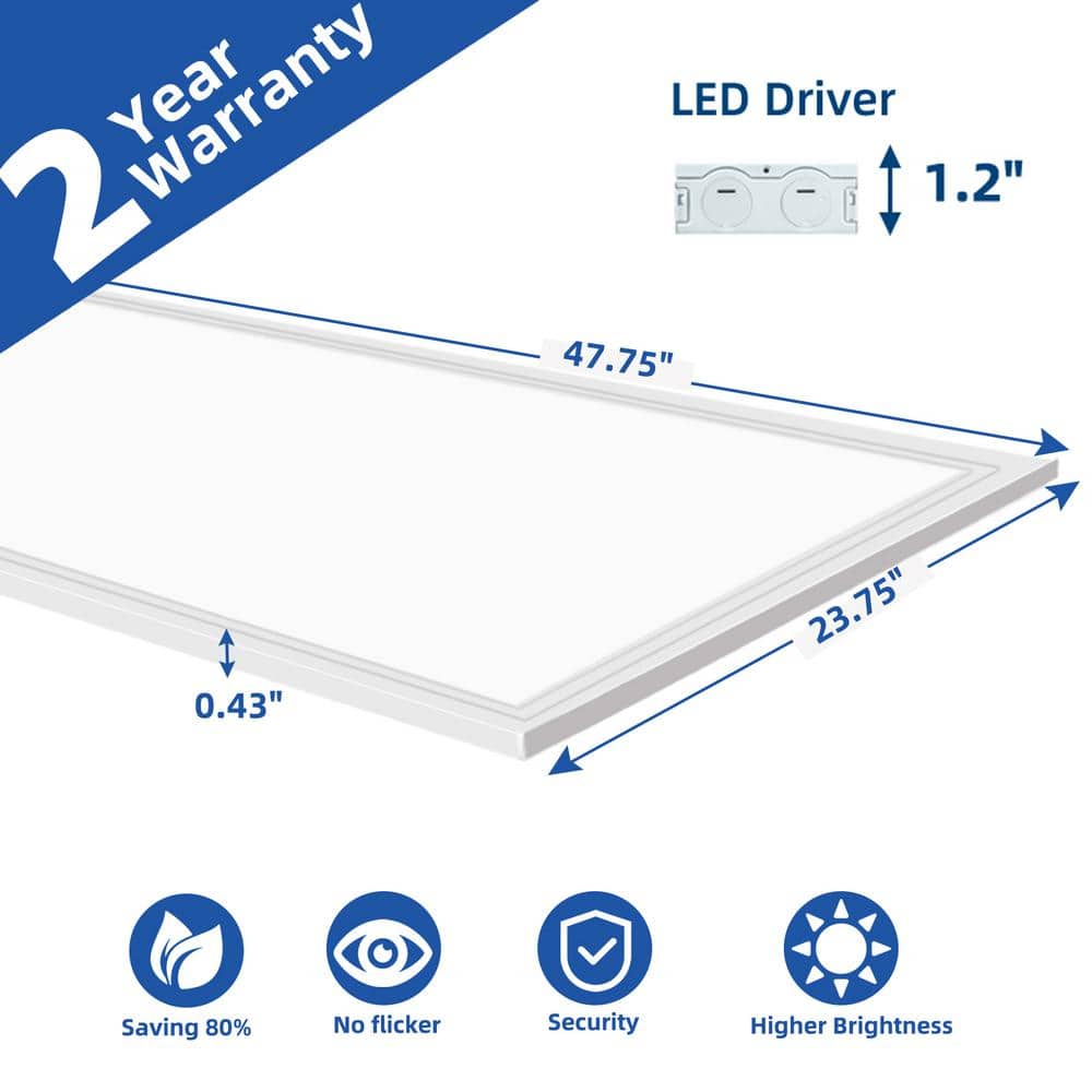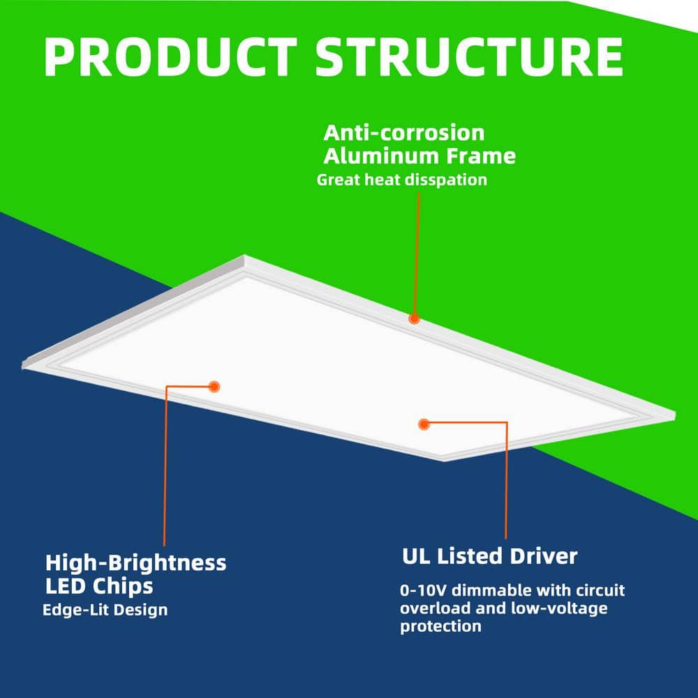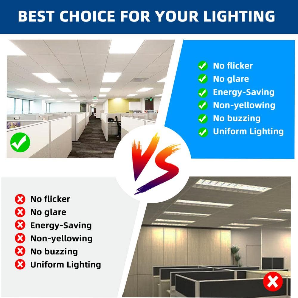 Illuminate large spaces with Bieuoram's 2x4 7800-Lumen Integrated LED Panel Light. This energy-efficient fixture offers a bright, 5000K day white glow perfect for offices, gyms, and other expansive areas, while its sleek design integrates seamlessly into modern ceilings. Achieve additional savings with its dimmable feature and enjoy enduring performance with a 50,000-hour lifespan.