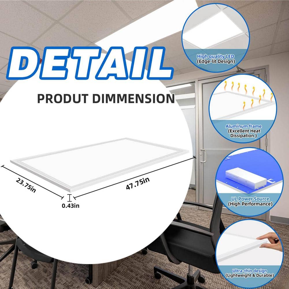Illuminate large spaces effortlessly with the Bieuoram 2 ft. x 4 ft. LED Panel Light. Featuring 7800 lumens of daylight white brightness and an ultra-thin design, this panel is perfect for commercial environments like offices and retail spaces. Its energy-efficient and dimmable technology ensures customizable comfort, making it a reliable choice for various applications.