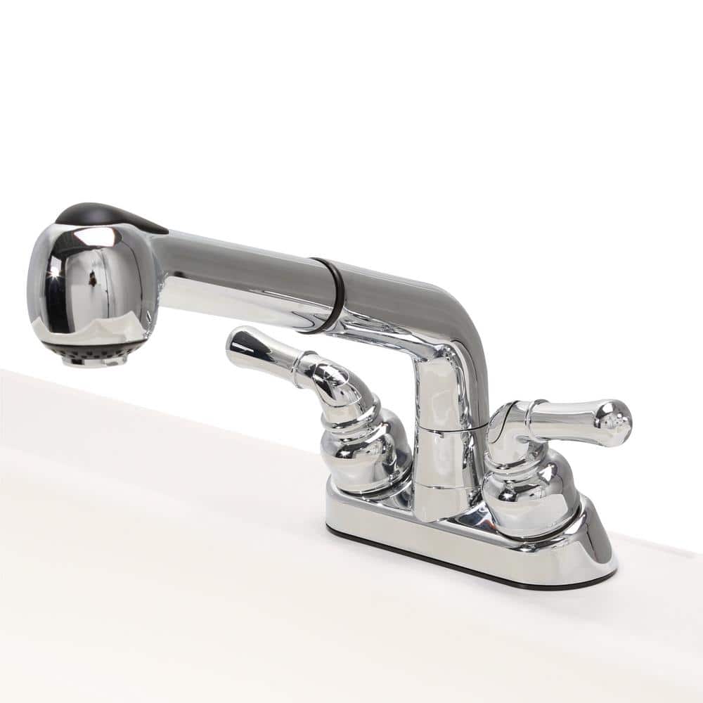 Swivel Faucet with Pull-Out Spout: Provides flexibility with a 24-inch extension for easy washing of large items.