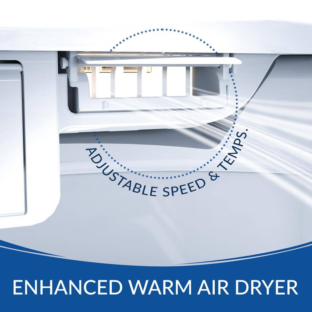 Heated Seat & Air Dryer: Experience comfort with adjustable warm air drying and heat settings.