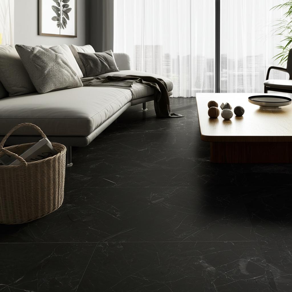 Upgrade your flooring with NuCore Black Marble Luxury Vinyl Tile for a stylish and durable solution.
