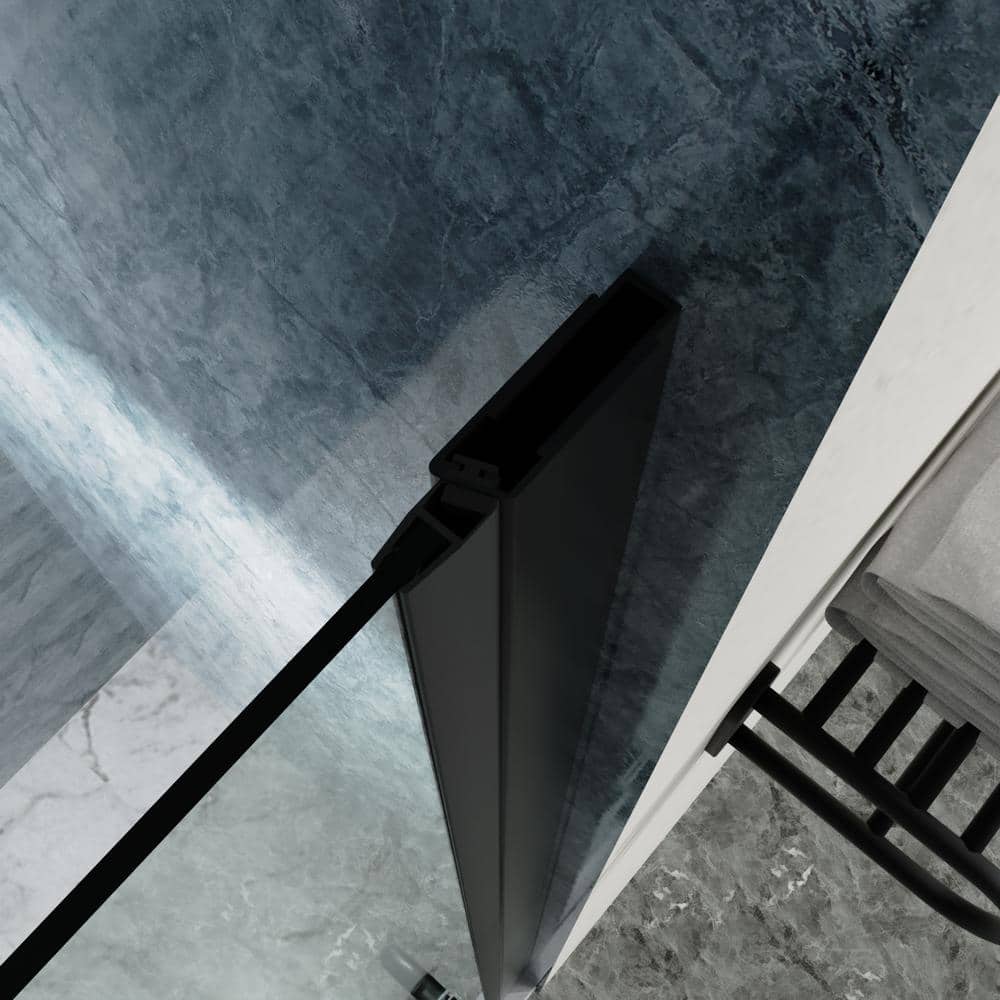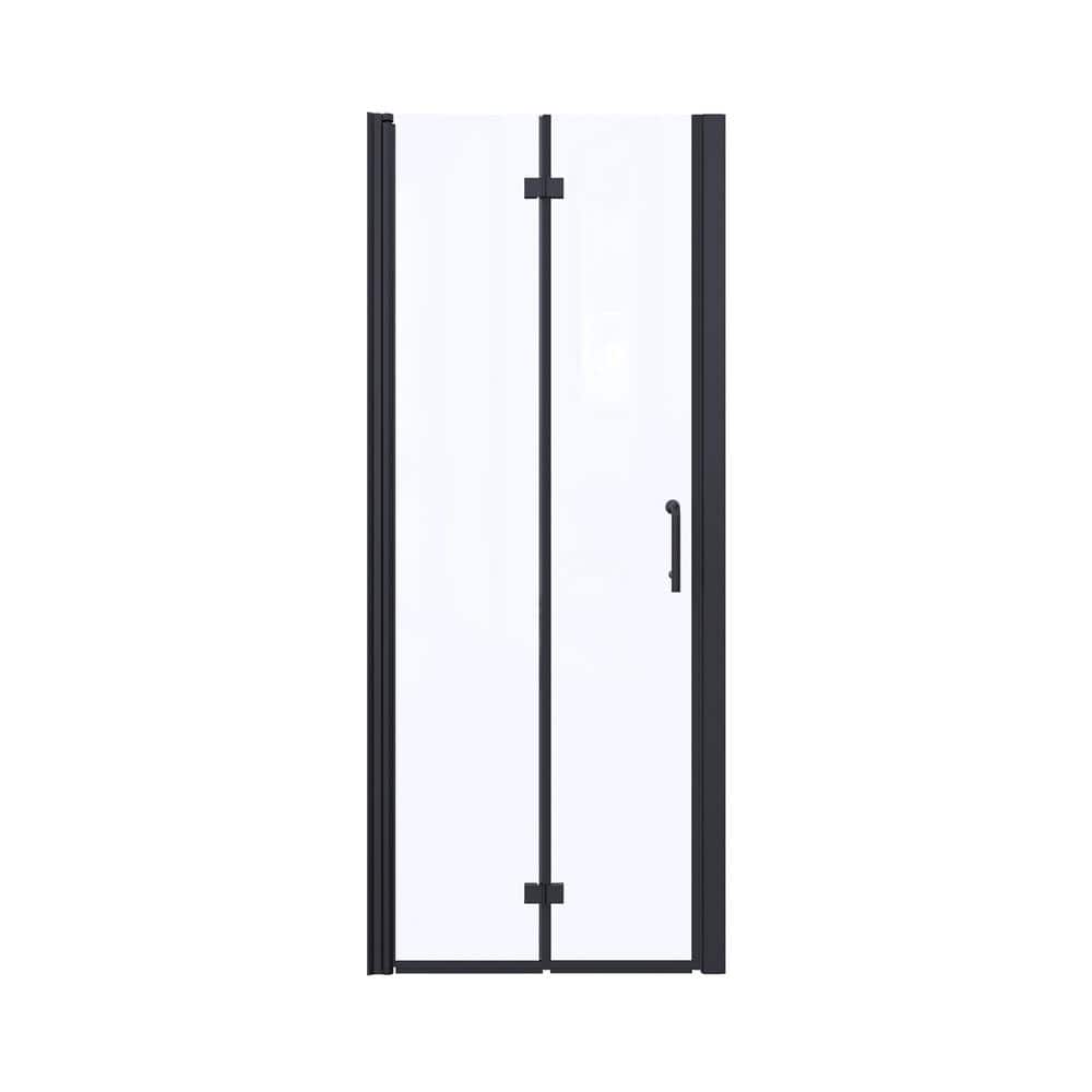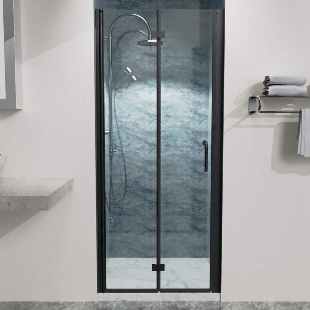Upgrade your bathroom with the Boosicavelly Matte Black Bifold Shower Door, featuring clear tempered glass for safety and elegance. The semi-frameless design maximizes visibility and light, offering a modern touch to any bathroom. Crafted with durable aluminum and a sleek matte black finish, this door is both stylish and functional.