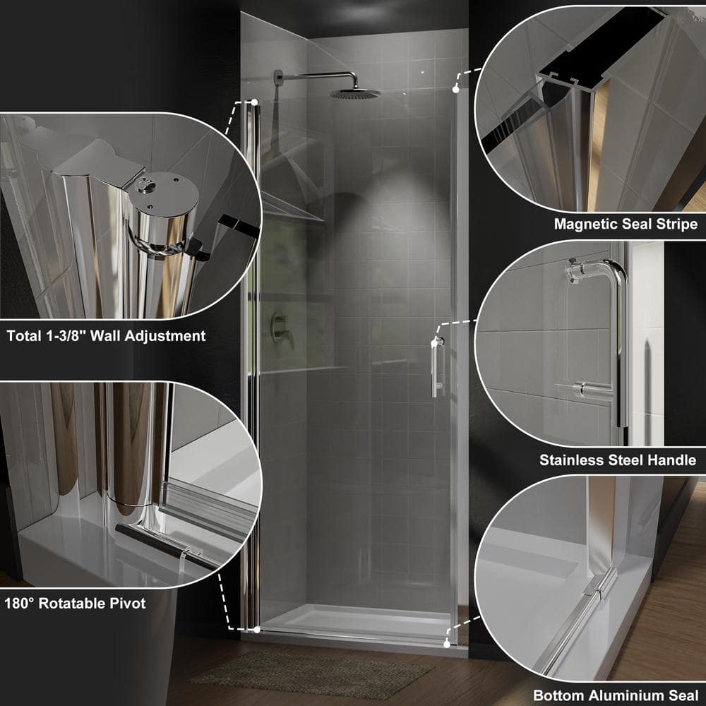 Boosicavelly 34" x 72" Pivot Shower Door in Chrome