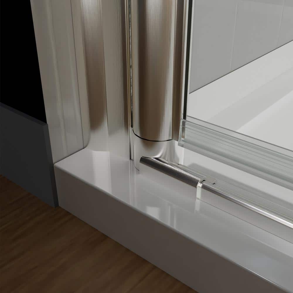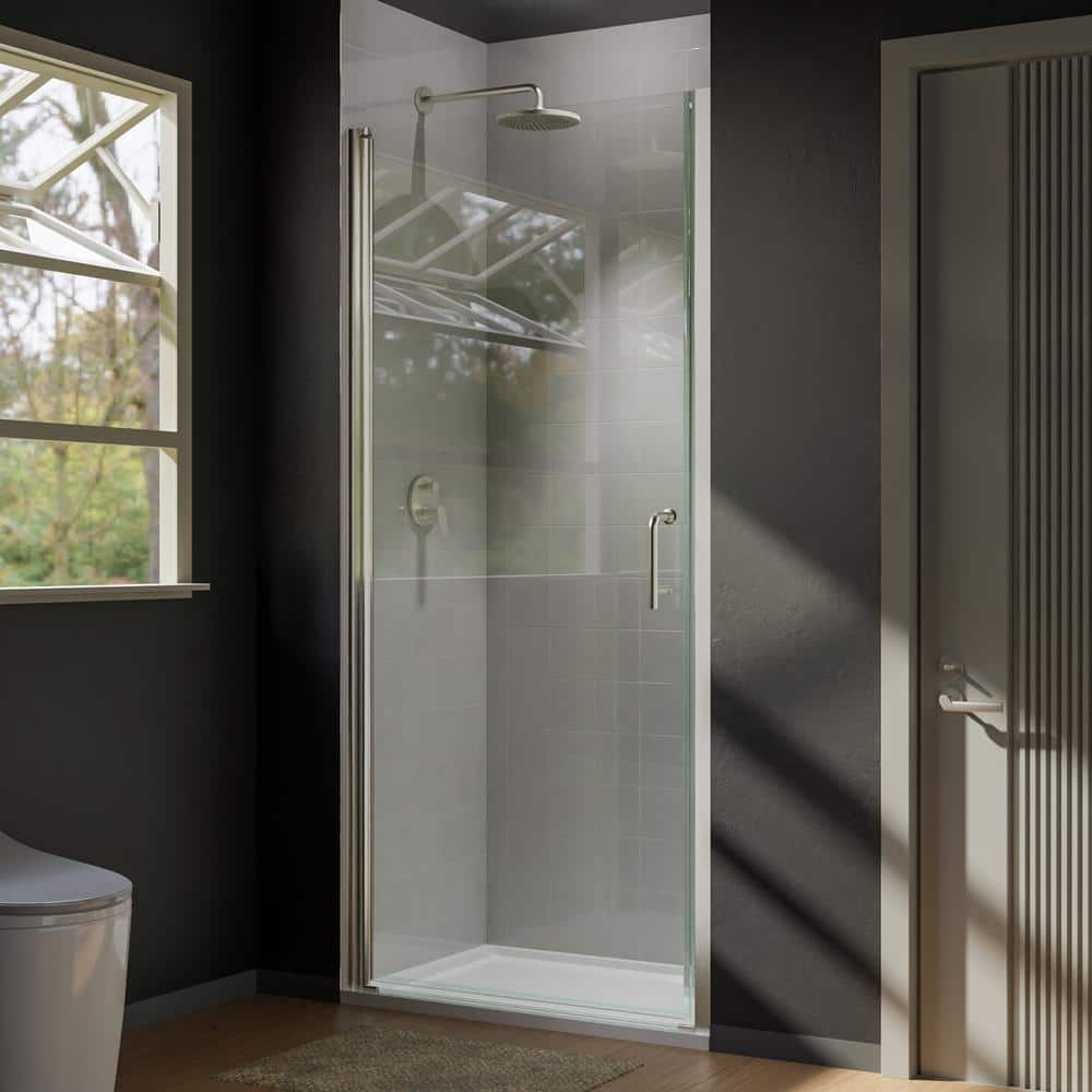Step into a sanctuary of sophistication with Boosicavelly's semi-frameless shower door. The pivot design seamlessly integrates into any contemporary space, gracing your bathroom with a refined silhouette of brushed nickel. Clear tempered glass invites an abundance of light, creating a tranquil oasis while maintaining privacy. Style it with lush eucalyptus branches hanging nearby for a spa-like feel. A touch of elegance and modernity that transforms your daily routine—truly essential for luxurious living.