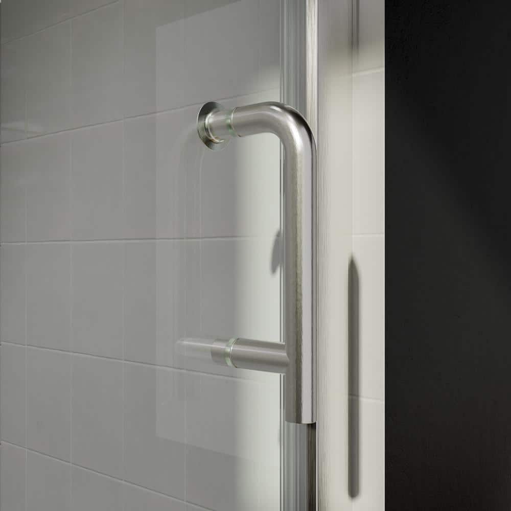 Redefine bathroom elegance with the Boosicavelly 34-inch Pivot Semi-Frameless Shower Door. This chic alcove shower solution features durable clear tempered glass and a stylish brushed nickel frame, offering both aesthetic appeal and high functionality. Perfect for modern bathrooms, it ensures a safe, spacious shower experience.
