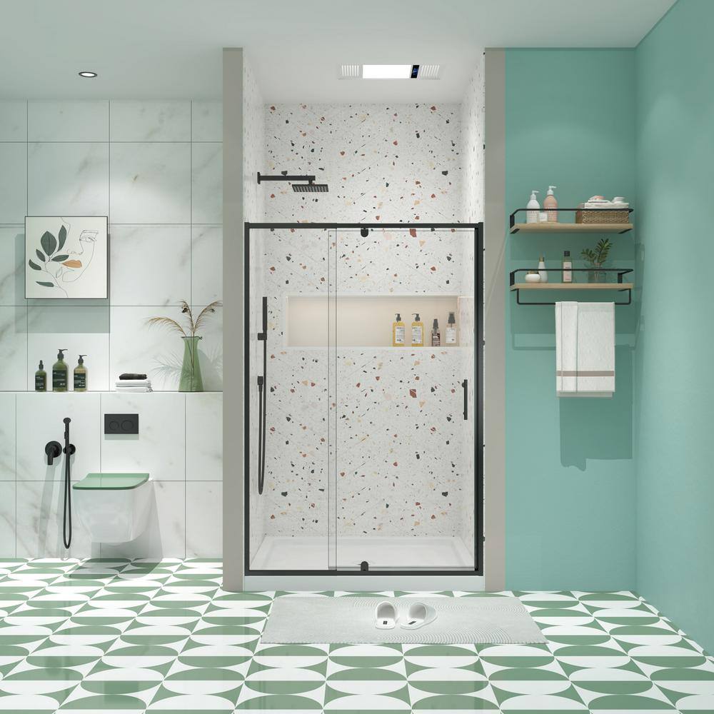 Pivot Shower Door with Tempered Glass - Matte Black