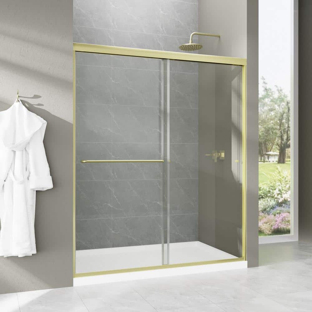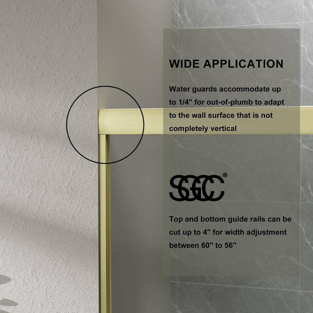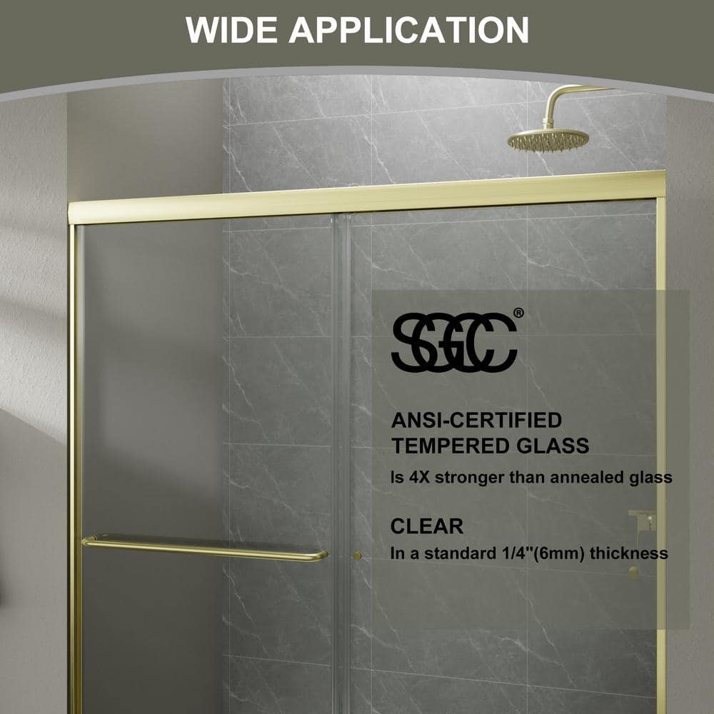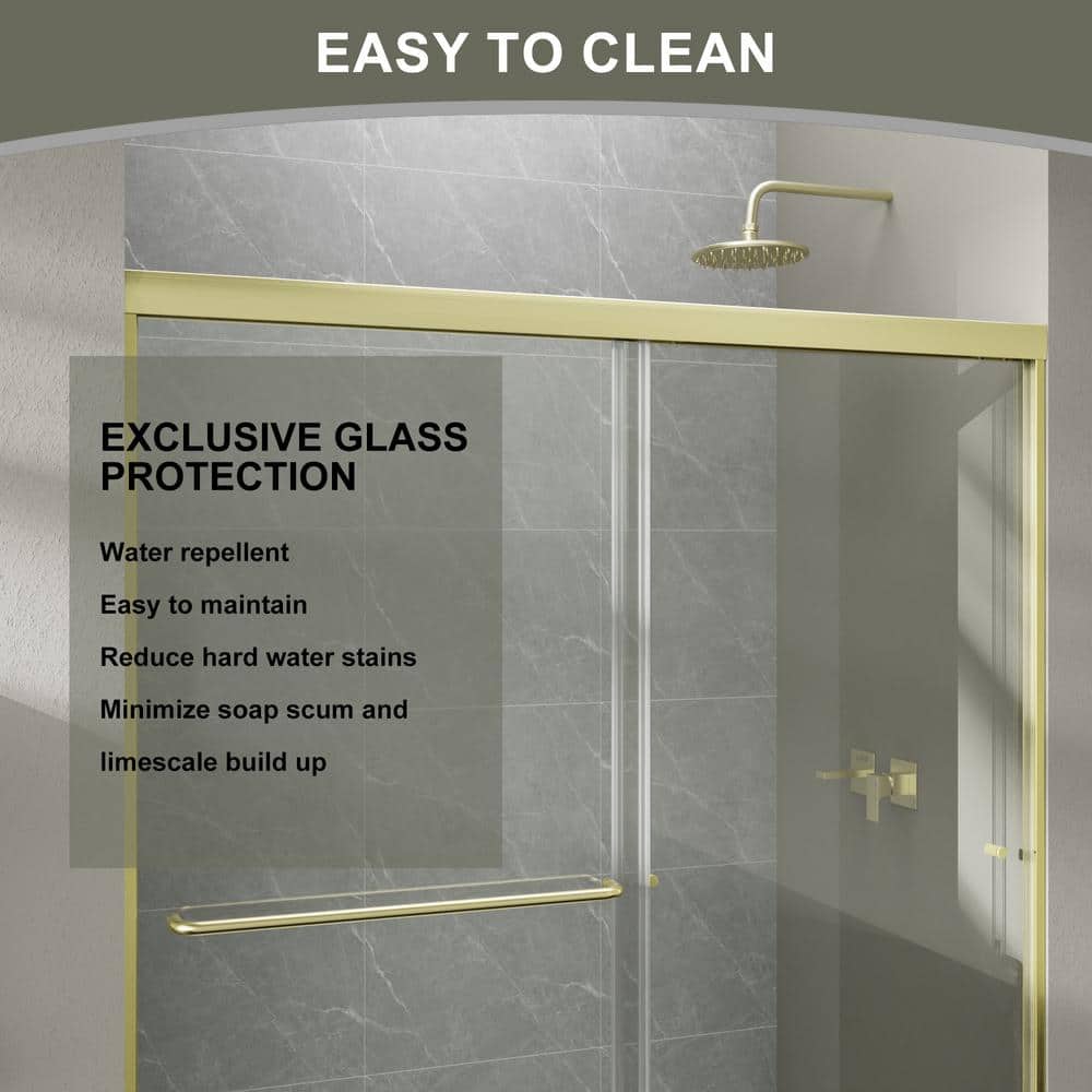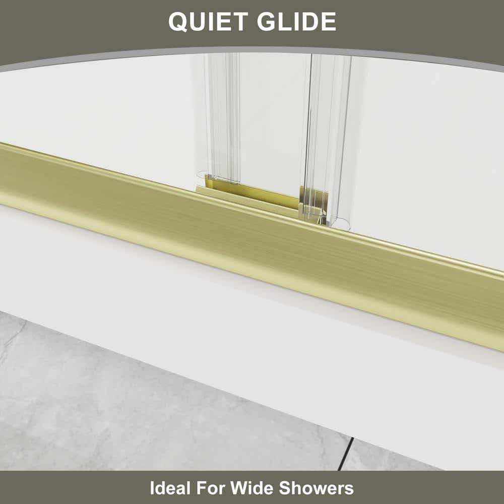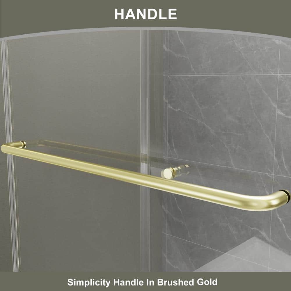 Elevate your bathroom with the Boosicavelly Sliding Shower Door, featuring elegant brushed gold framing and durable tempered glass. Designed for seamless entry and exit from either side, this shower door combines style and functionality while enhancing your space with modern sophistication.