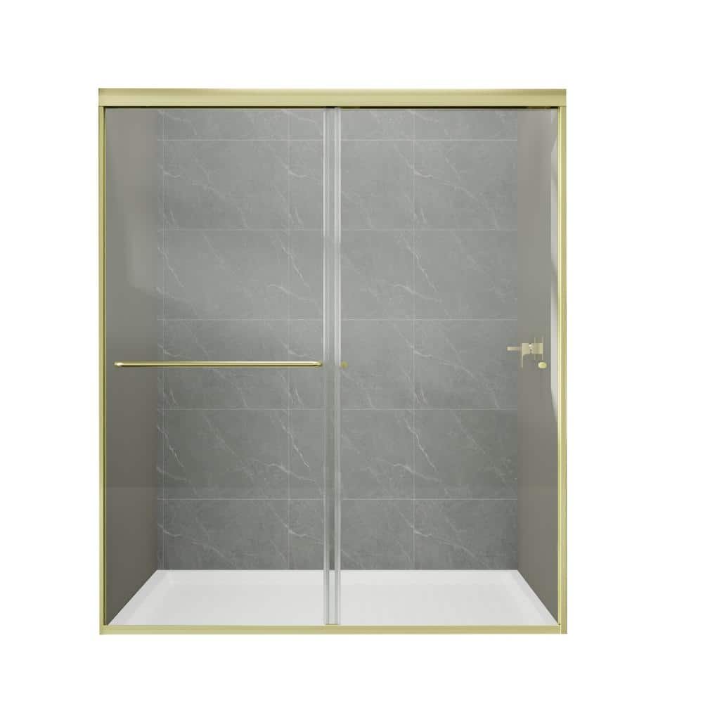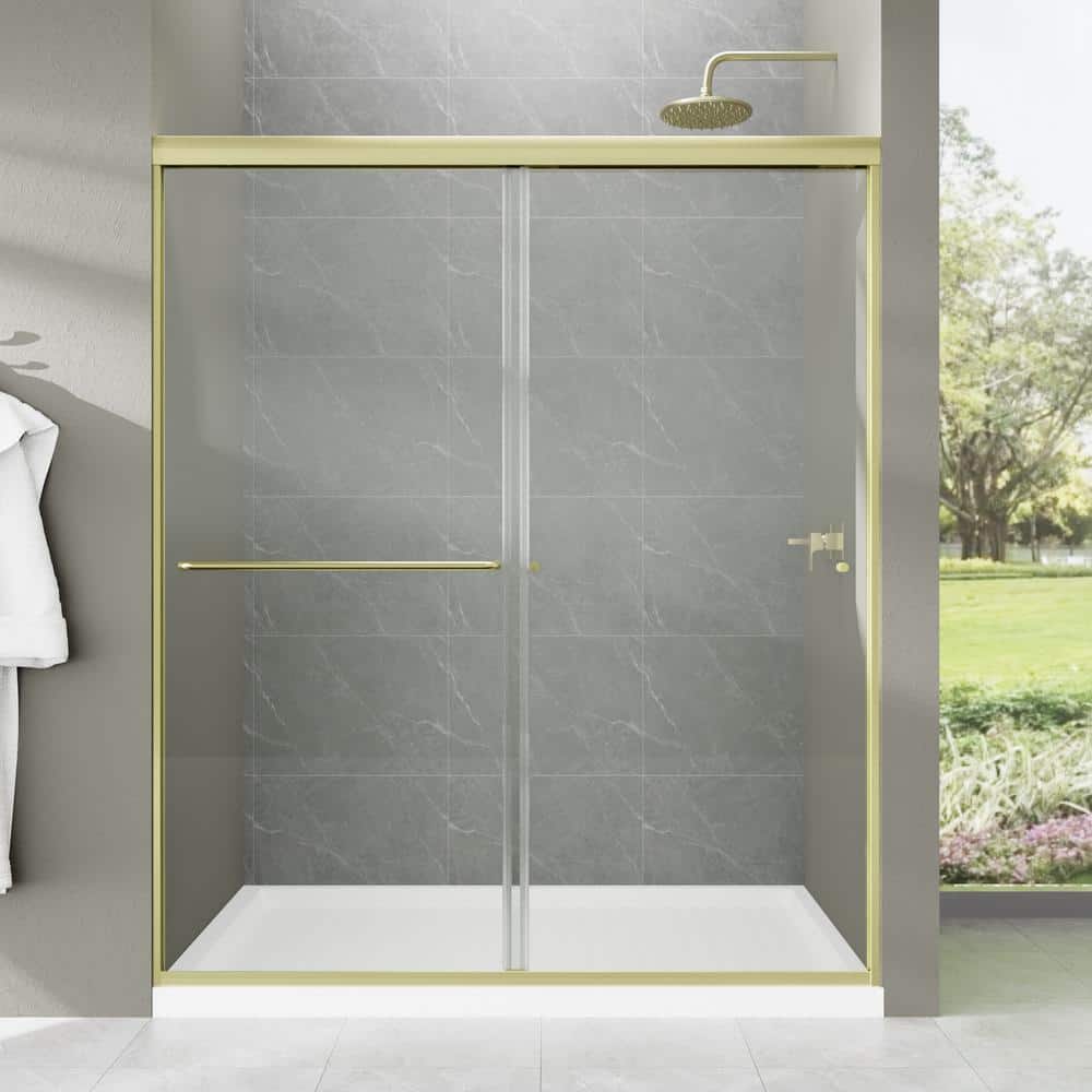 Boosicavelly Sliding Shower Door with Brushed Gold Finish