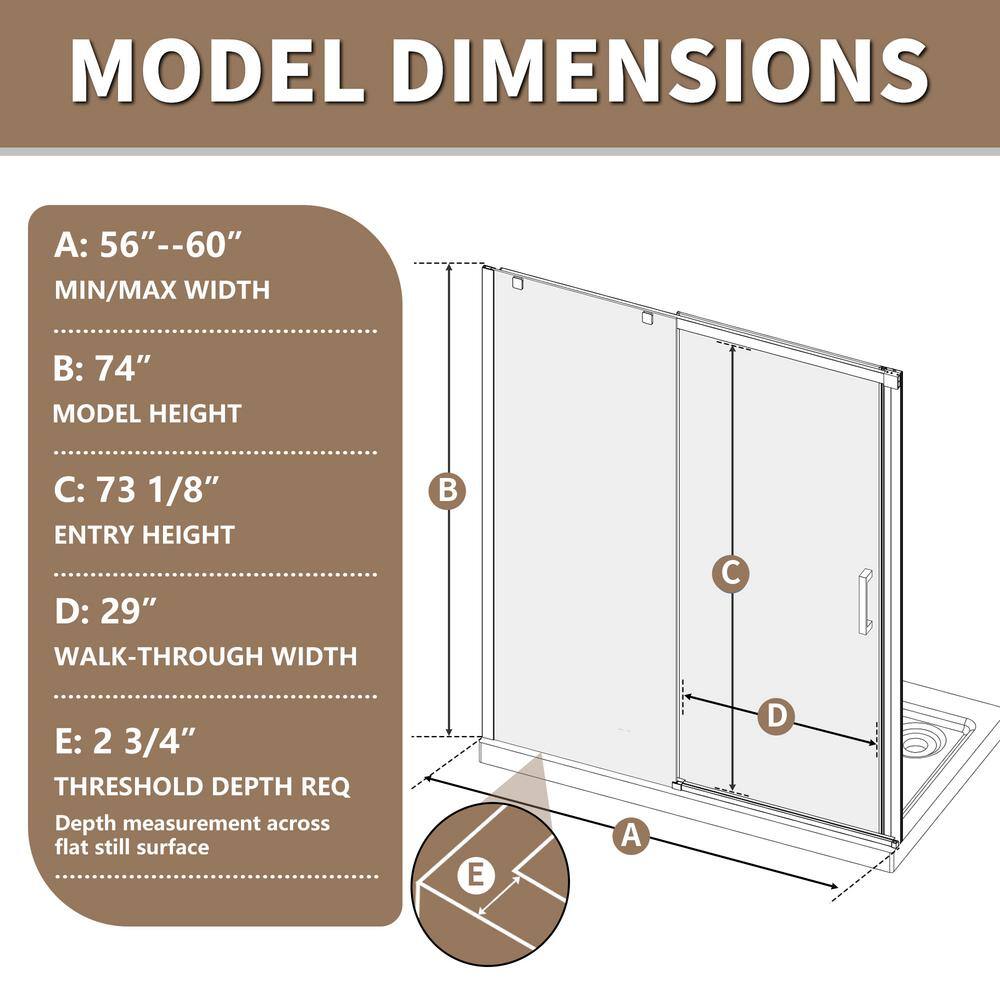 Transform your bathroom into a modern haven with Boosicavelly's 60-inch sliding shower door. Featuring a sturdy matte black aluminum frame and durable clear tempered glass, this door enhances both safety and style. With easy installation and a sleek design, it effortlessly updates any bathroom space.