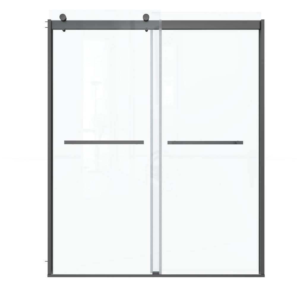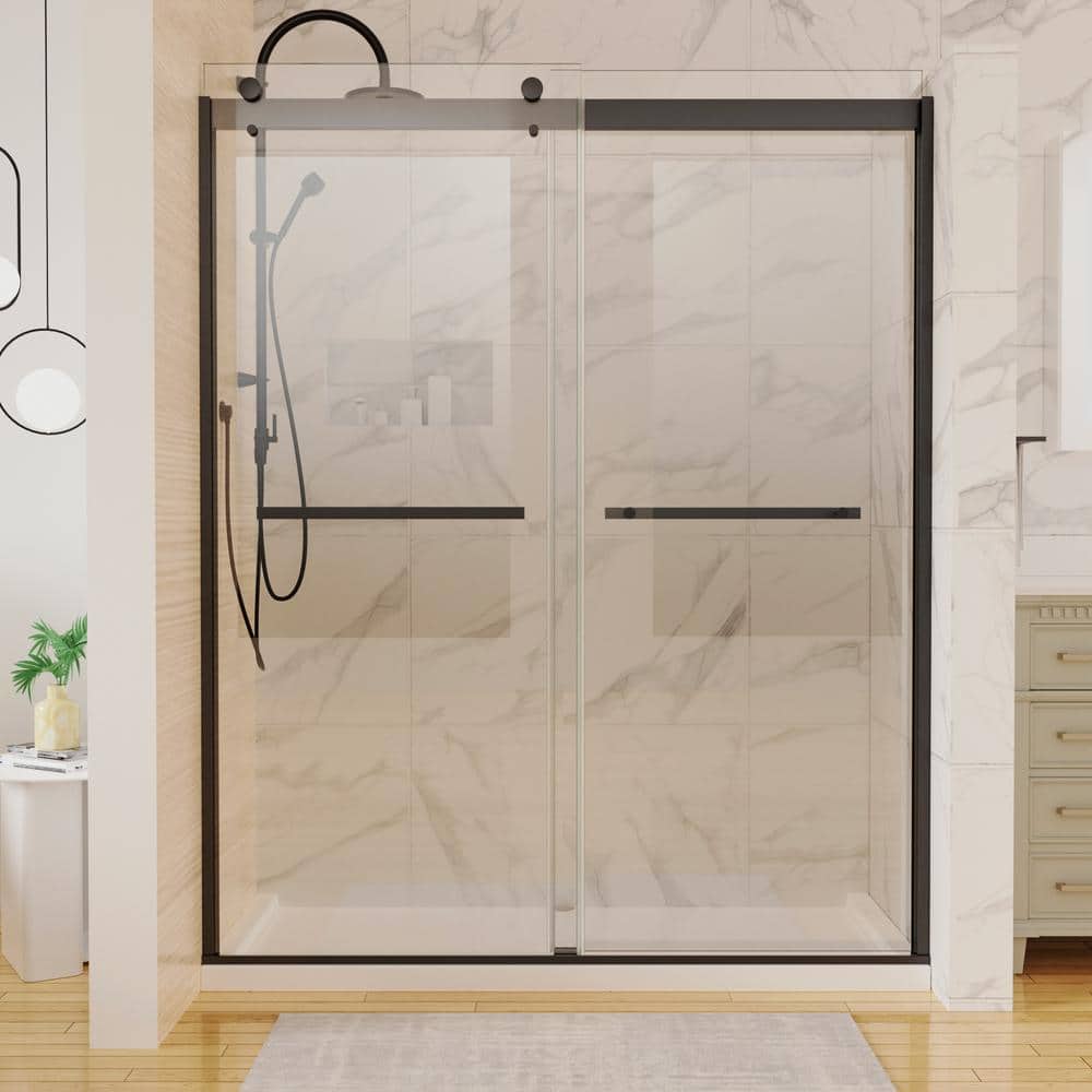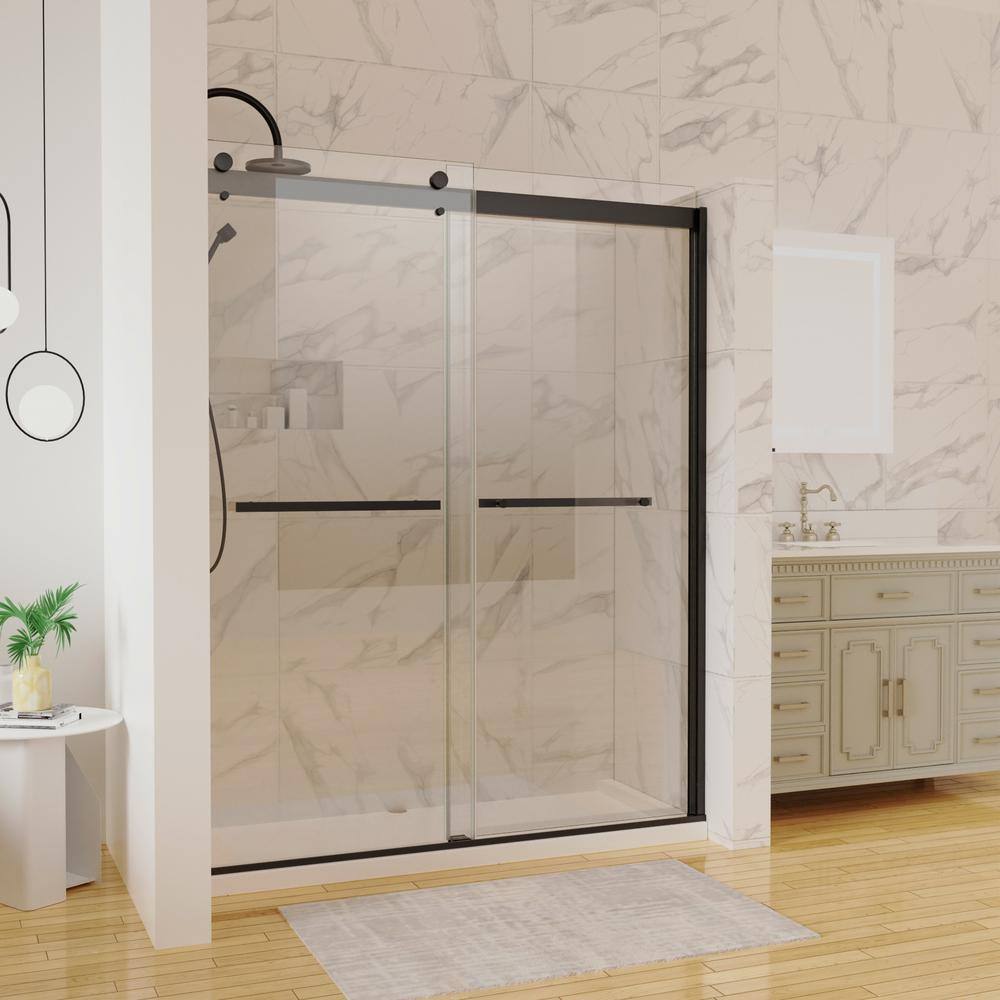Transform your bathroom with the Boosicavelly 60-inch Sliding Semi-Frameless Shower Door in Matte Black. Featuring smooth double sliding tempered glass, it offers both convenience and modern elegance, ensuring a spacious feel and lasting durability.