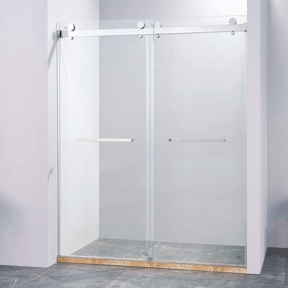 Transform your bathroom into a tranquil oasis with the Boosicavelly Double Sliding Frameless Shower Door. This piece evokes simplicity and elegance with its frameless design, making any bathroom feel more expansive and luminous. Its polished chrome accents add a touch of contemporary luxury, effortlessly merging with any modern or traditional décor. Envision pairing it with a white marble floor and plush towels for an indulgent, spa-like retreat at home. It's the perfect choice for those looking to meld functionality with stunning design.