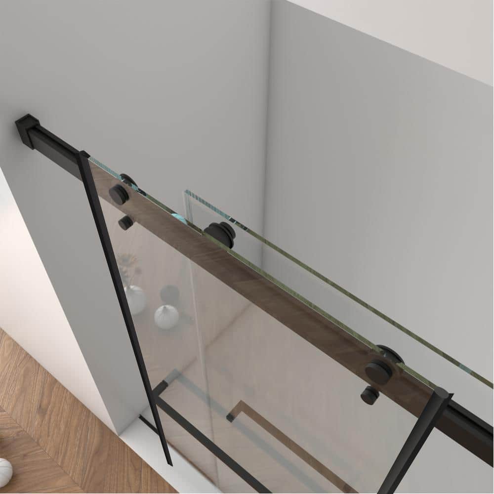Boosicavelly Matte Black Frameless Double Sliding Shower Door