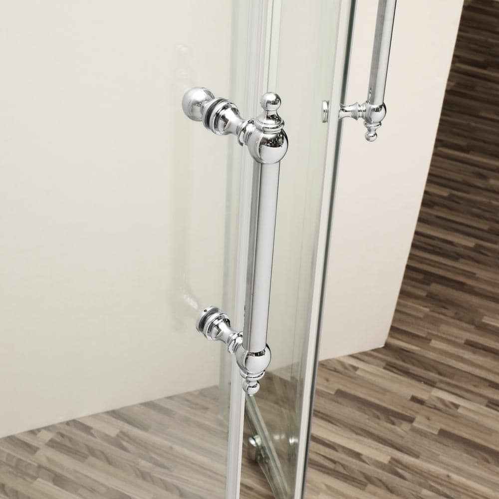 Enhance your bathroom with the Boosicavelly Double Sliding Semi-Frameless Corner Shower Enclosure. With its elegant chrome finish and clear tempered glass, this enclosure blends classic style with a modern touch. It is designed to maximize space with its unique corner placement and smooth double sliding doors.