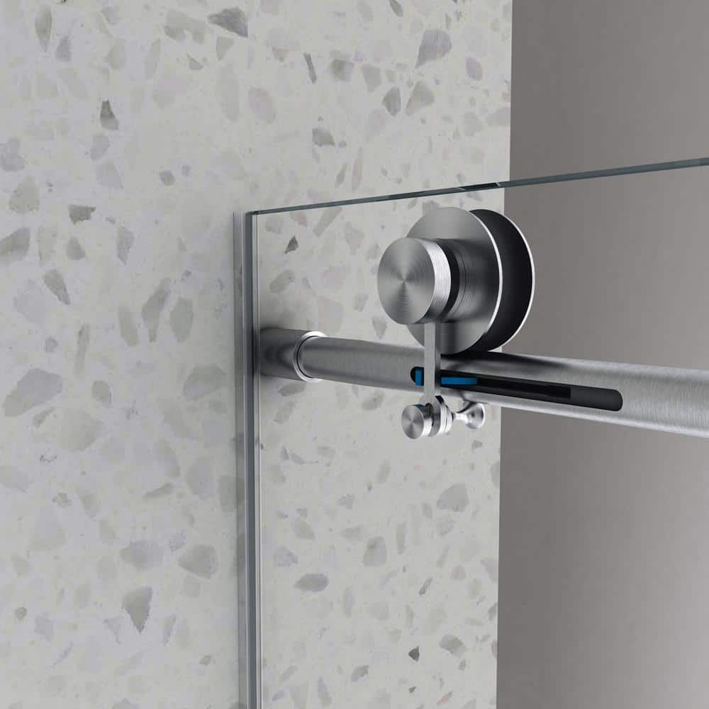 Elevate any bathroom space with the modern elegance of Boosicavelly's Single Sliding Frameless Shower Door, finished in brushed nickel and featuring frosted glass for privacy. Designed to combine style and functionality, this shower door is fitted with durable, safety-tempered glass and a sophisticated soft-closing mechanism, promising both aesthetic appeal and lasting quality.