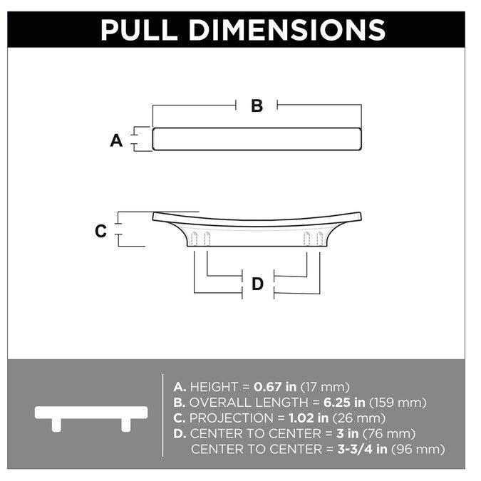 Brainerd Flared Square 3-in or 3-3/4-in (76Mm or 96mm) Center to Center Matte Black Dual Mount Square Bar Drawer Pull