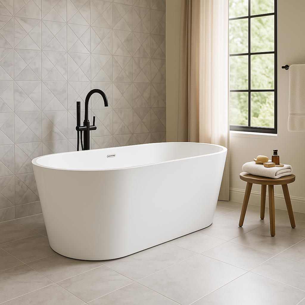 Elevate your bathroom experience with the Brightling 67-inch freestanding bathtub—order now to indulge in ultimate relaxation.