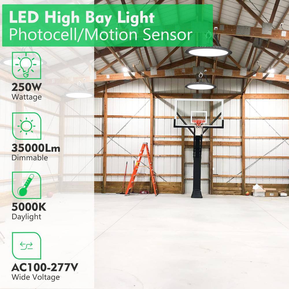 Upgrade your lighting to the 250W LED High Bay Light with Motion Sensor and experience unparalleled efficiency and brightness.