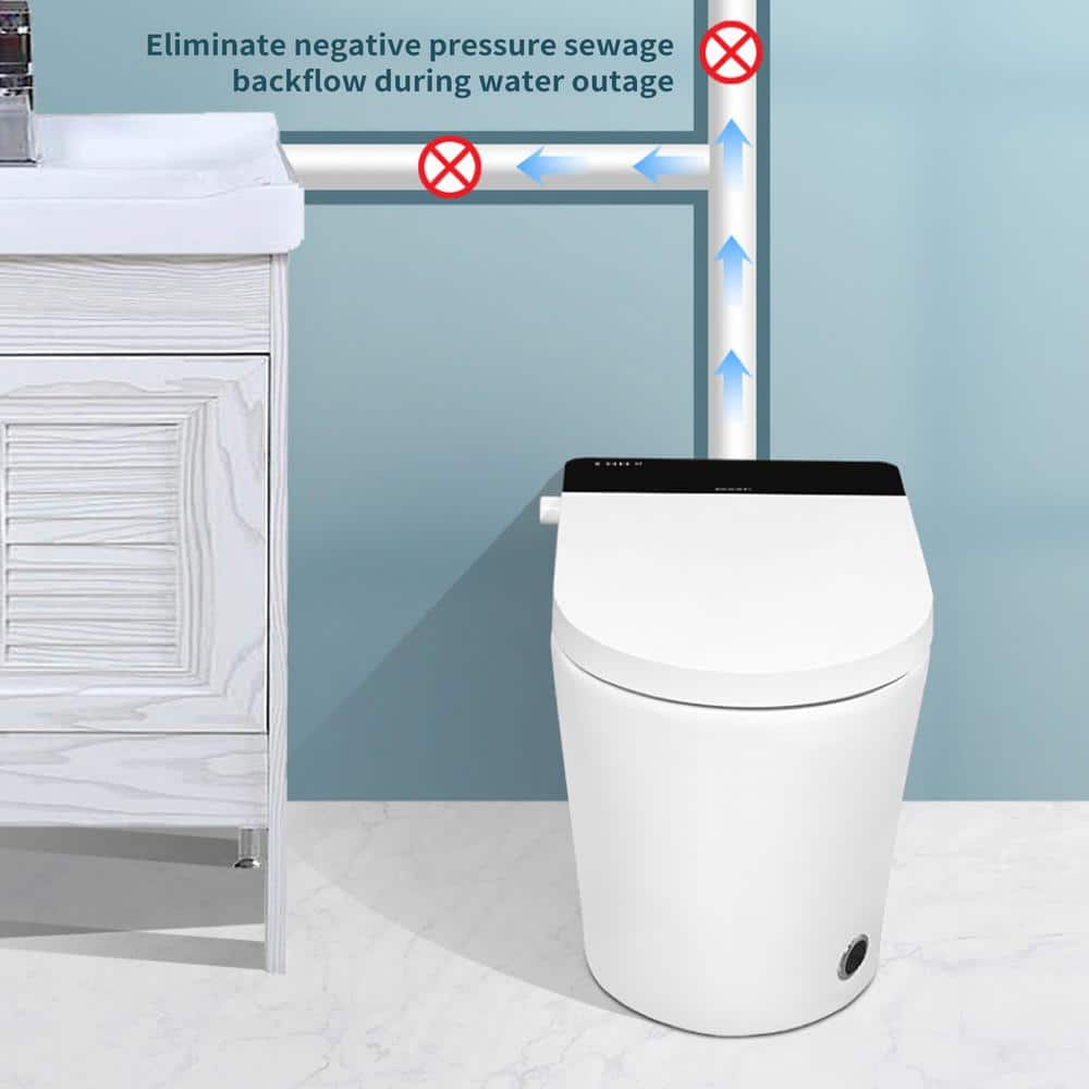 Experience the pinnacle of luxury and hygiene with the BWE Stylement Tankless Smart Bidet One Piece Toilet. Designed with innovative technology such as an automated lid, flush, and a hygienic pre-wetting system, this elegant toilet ensures a cleaner, more comfortable bathroom experience. With customizable settings for cleansing and drying, it brings unparalleled convenience and cleanliness to your home.