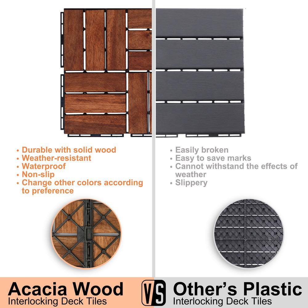 Transform your outdoor spaces today with the easy elegance of Cadeninc's Acacia Hardwood Floor Tiles — where style meets simplicity!