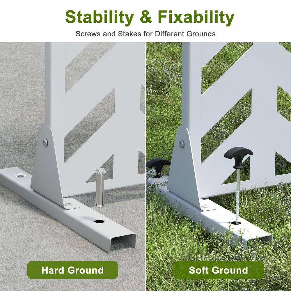Be enchanted by the cadeninc Fishbone Metal Privacy Screen's ability to transform mundane spaces into intimate retreats. This exquisite, white sculpture-like piece complements any decor with its subtle sophistication and modern design. Imagine it gracing your patio, framed by lush greenery or vibrant florals, creating a secluded oasis. Elevate your outdoor elegance with this essential blend of art and privacy, crafted to indulge your senses and inspire stylish living.