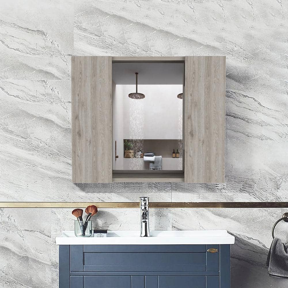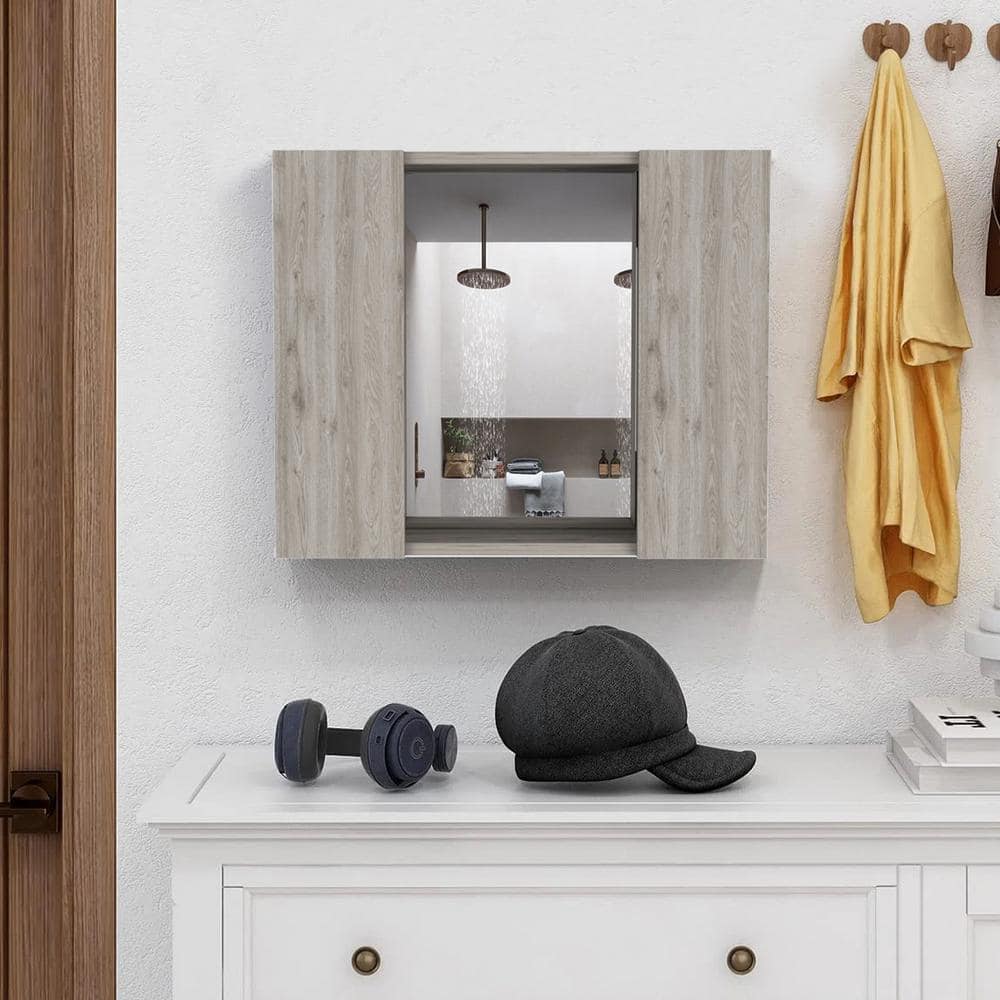 Elevate your bathroom's functionality with the Cadeninc Light Gray Medicine Cabinet, featuring a sleek double door mirror and ample storage space. Perfect for compact bathrooms, this cabinet combines style with practicality, offering a humidity-resistant MDF construction and a versatile design that complements any decor.