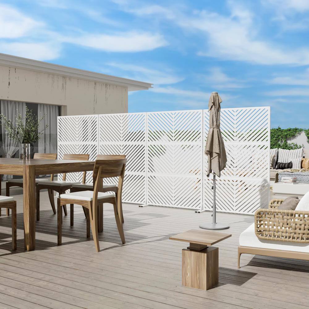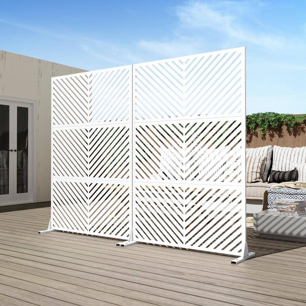 Cadeninc's Metal Freestanding Privacy Screen turns your outdoor area into an intimate retreat with its louvered design and sleek, modern look. Crafted from durable galvanized steel, this stylish panel provides a balance of privacy and openness, perfect for defining different sections of your patio or garden without compromising on elegance.