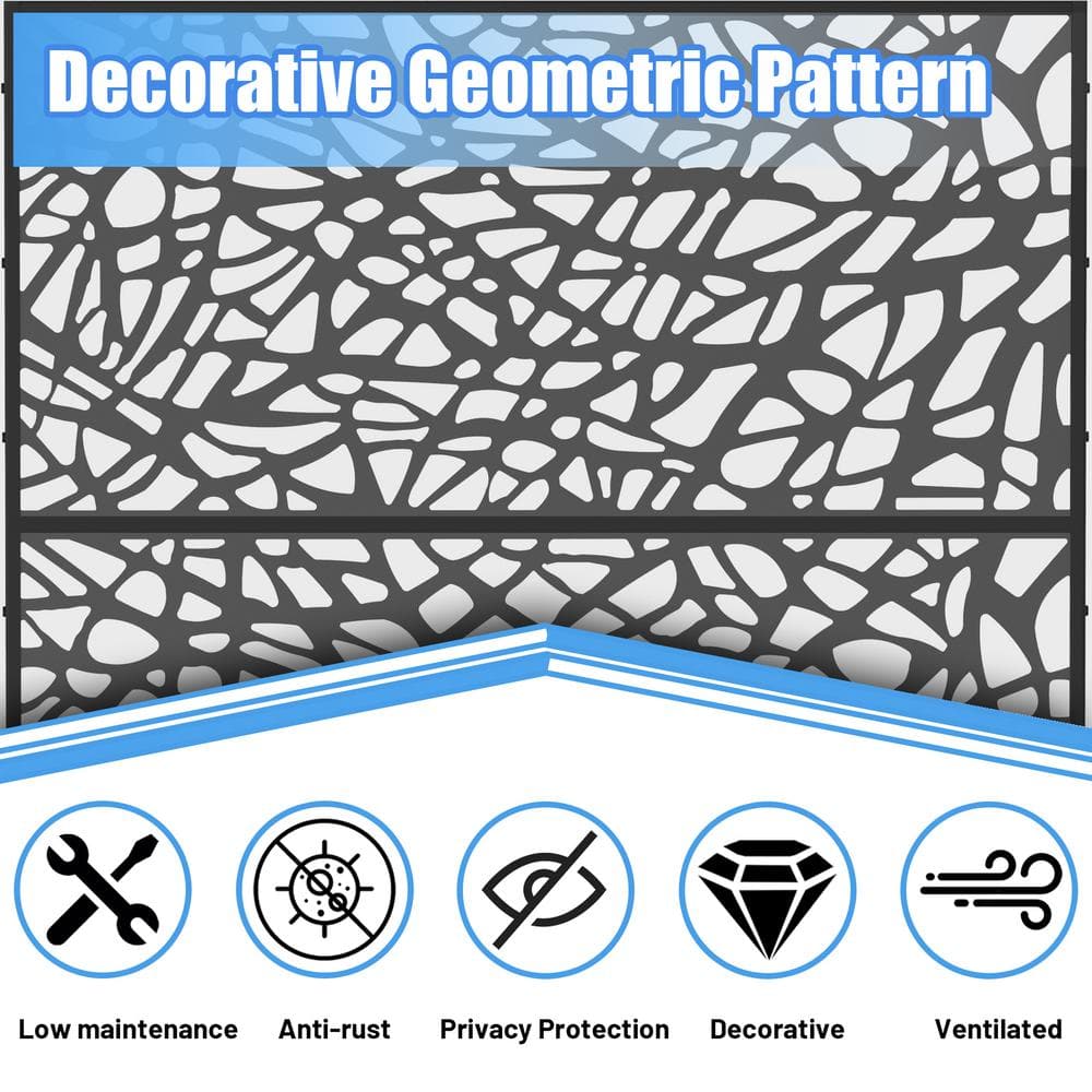 cadeninc Freestanding Black Metal Privacy Screen 3.98 ft x 5.89 ft