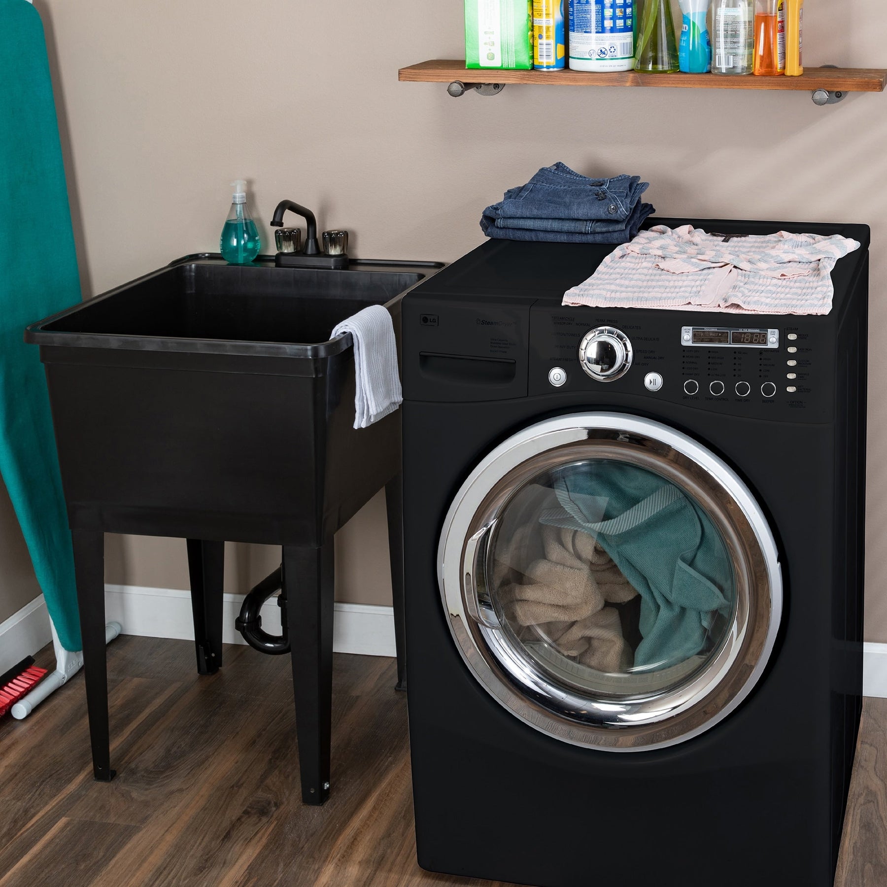 Cambridge Resources 1-Basin Black Freestanding Utility Tub with Drain and Faucet