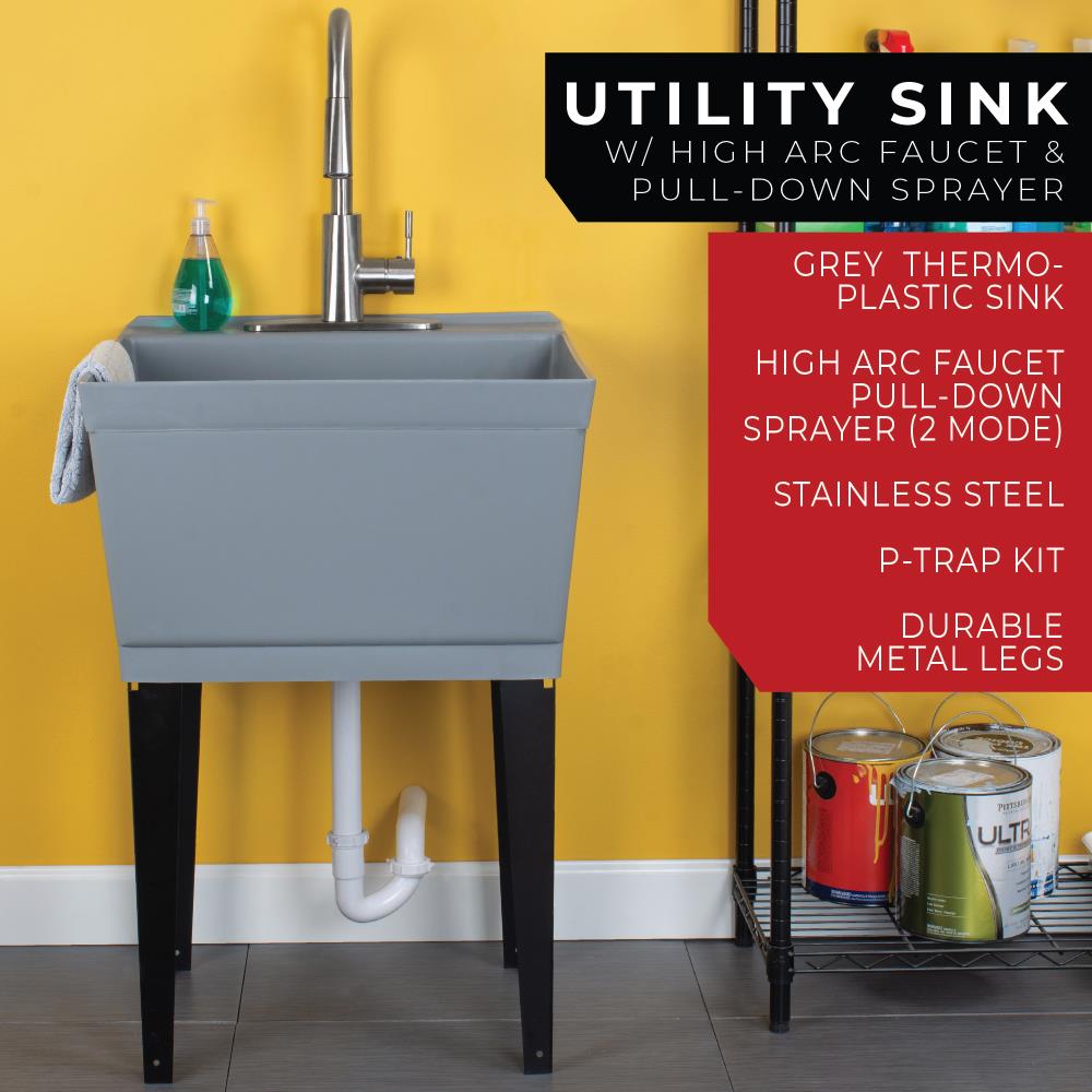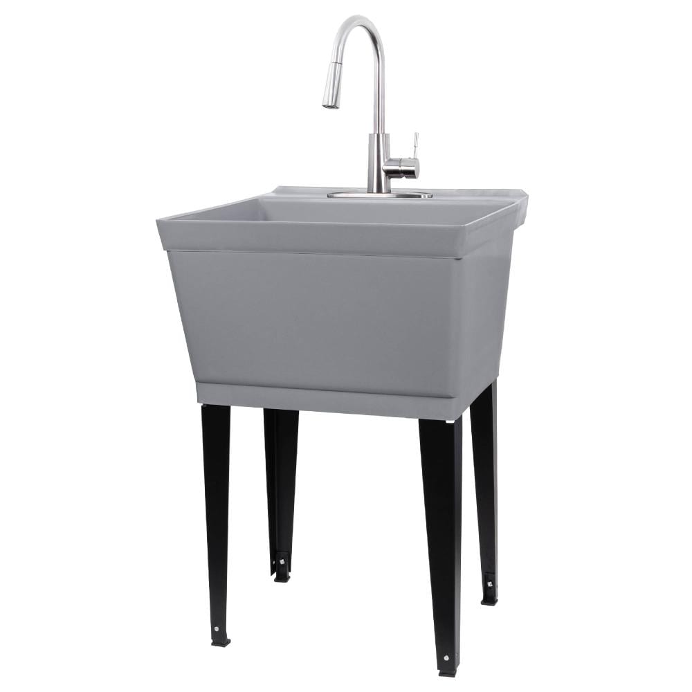 Cambridge Resources 23.5-Inch Gray Freestanding Utility Tub with Drain & Faucet